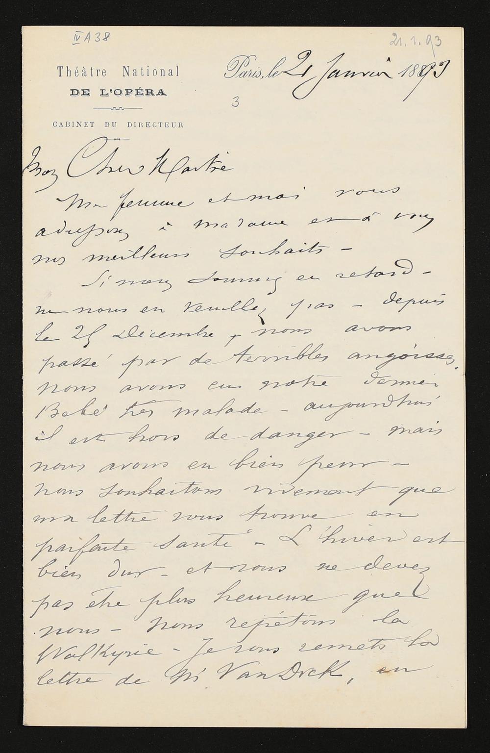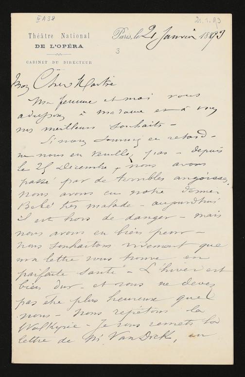 eigenhändiger Brief mutmaßlich von Eugène Bertrand (Théâtre National de l'Opéra, Cabinet du directeur) mutmaßlich an Adolf von Gross
