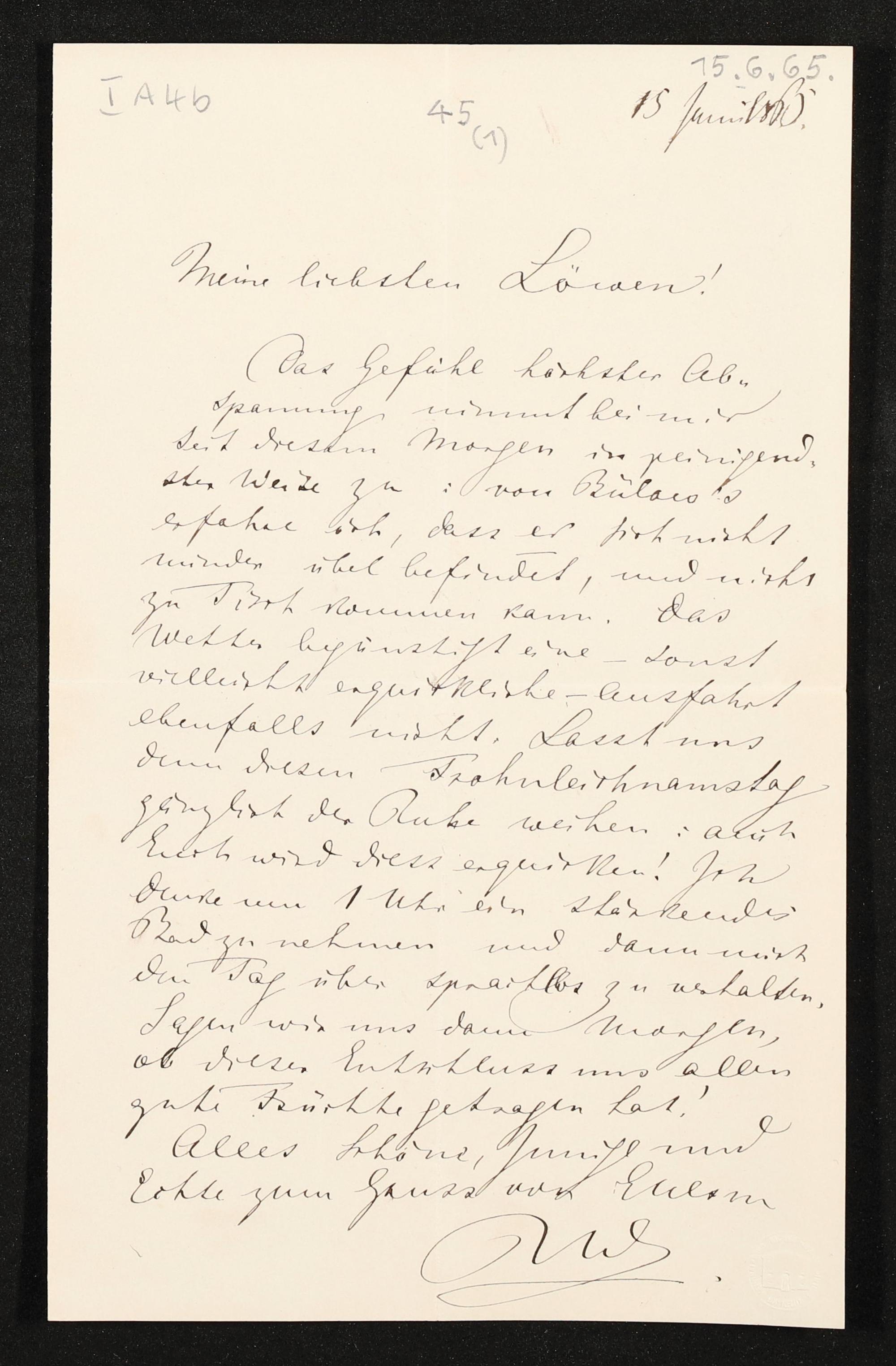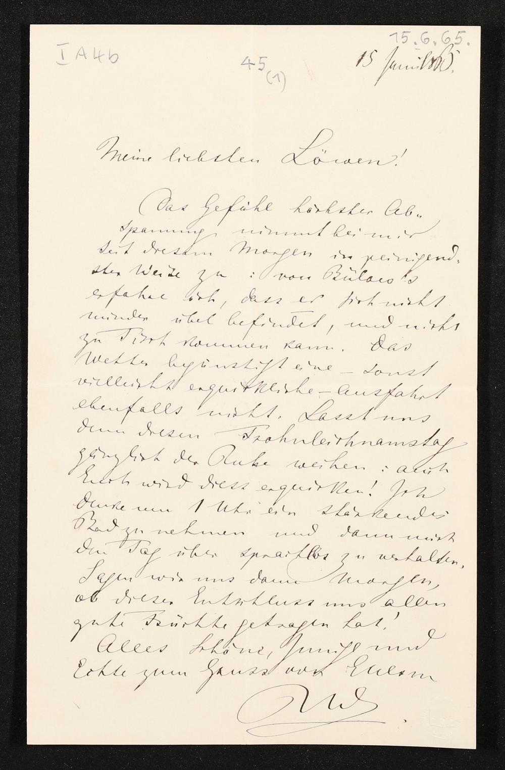 eigenhändiger Brief von Richard Wagner an Ludwig Schnorr von Carolsfeld