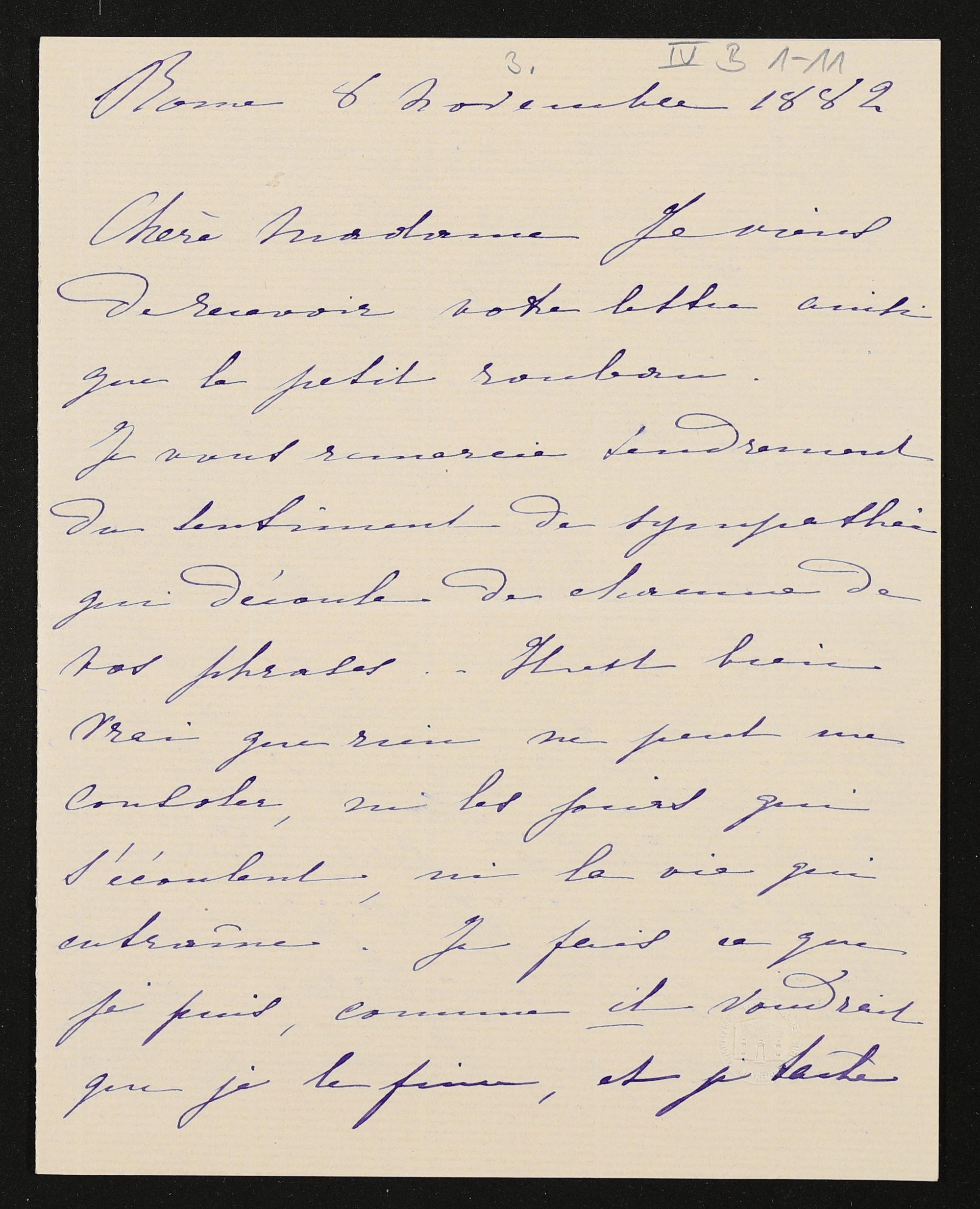 eigenhändiger Brief von Mathilde de la Tour an Cosima Wagner