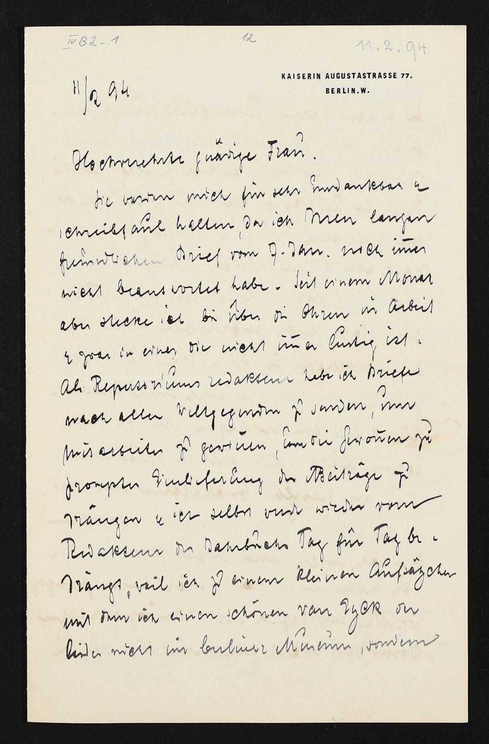 eigenhändiger Brief von Hugo von Tschudi an Cosima Wagner