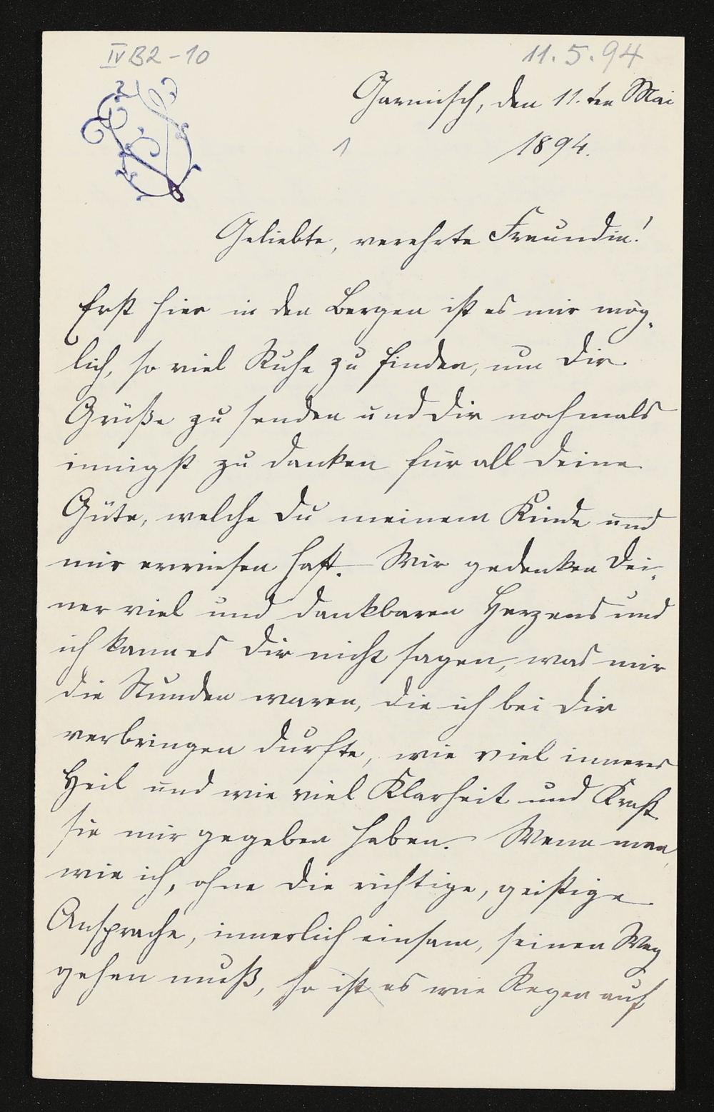 eigenhändiger Brief von Ida Vogl an Cosima Wagner