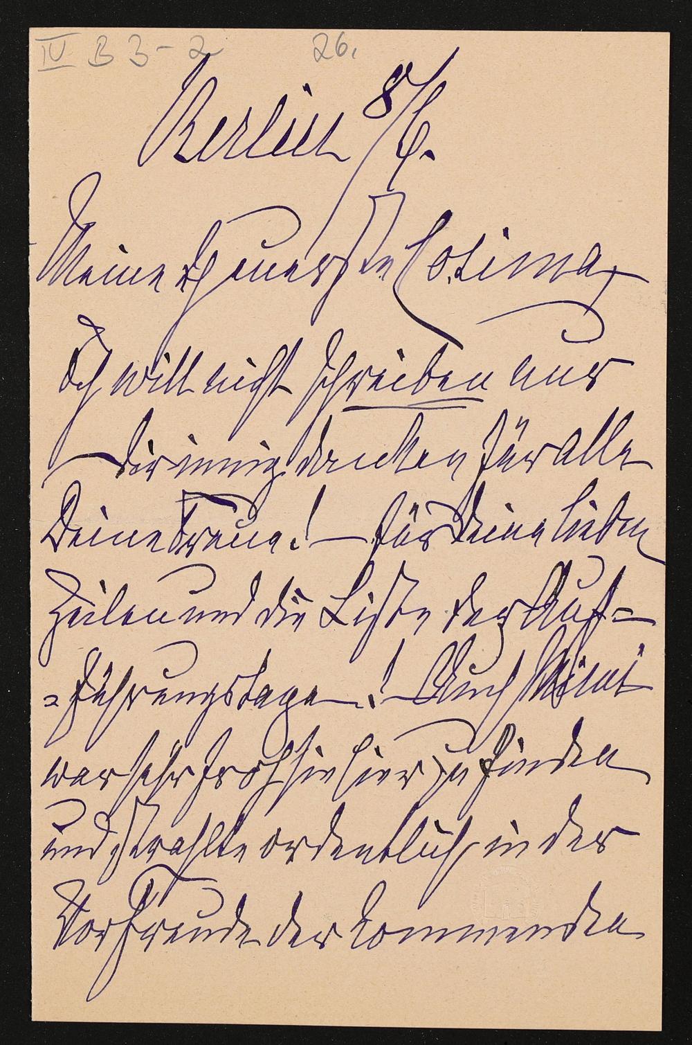 eigenhändiger Brief von Isa Voß an Cosima Wagner