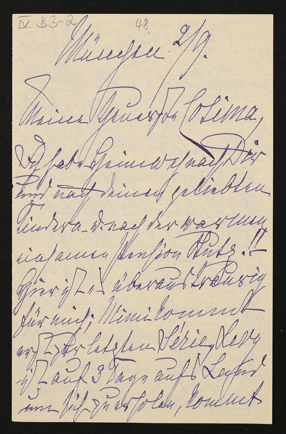 eigenhändiger Brief von Isa Voß an Cosima Wagner