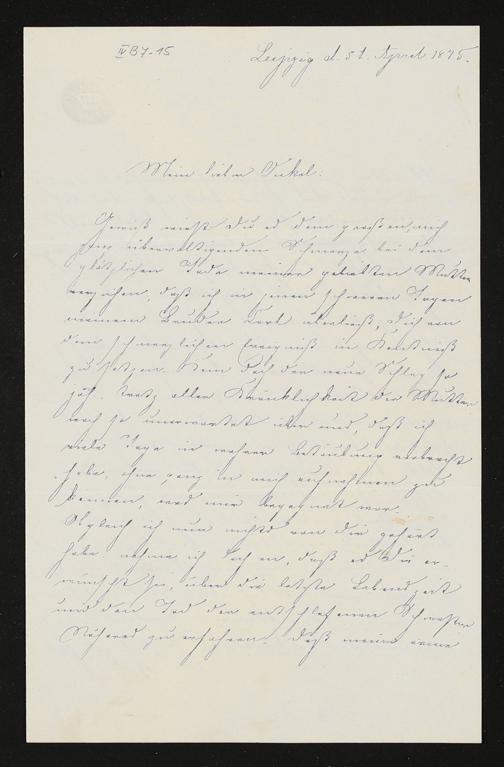 eigenhändiger Brief von Rosalie Wolfram an Richard Wagner
