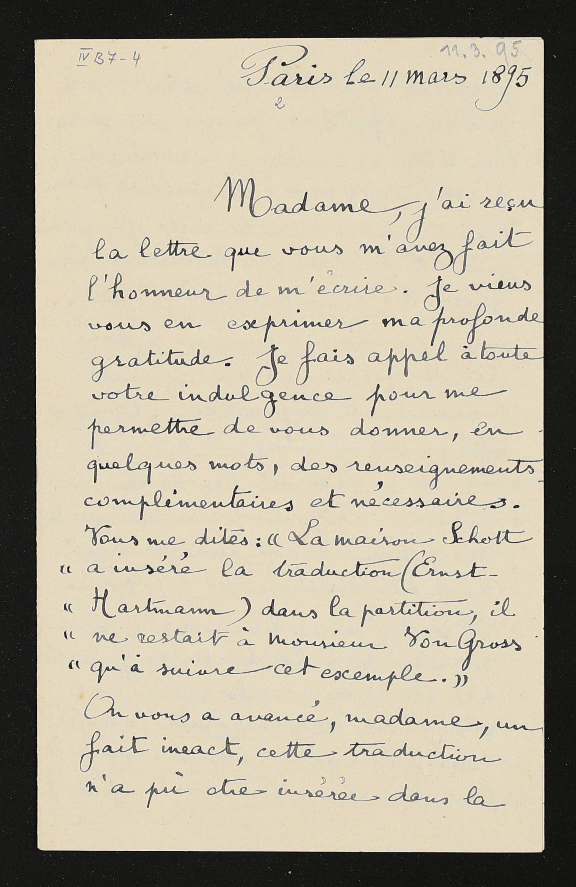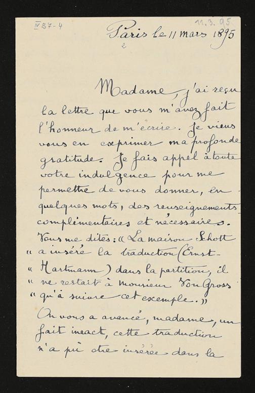 eigenhändiger Brief von André Wilder an Cosima Wagner