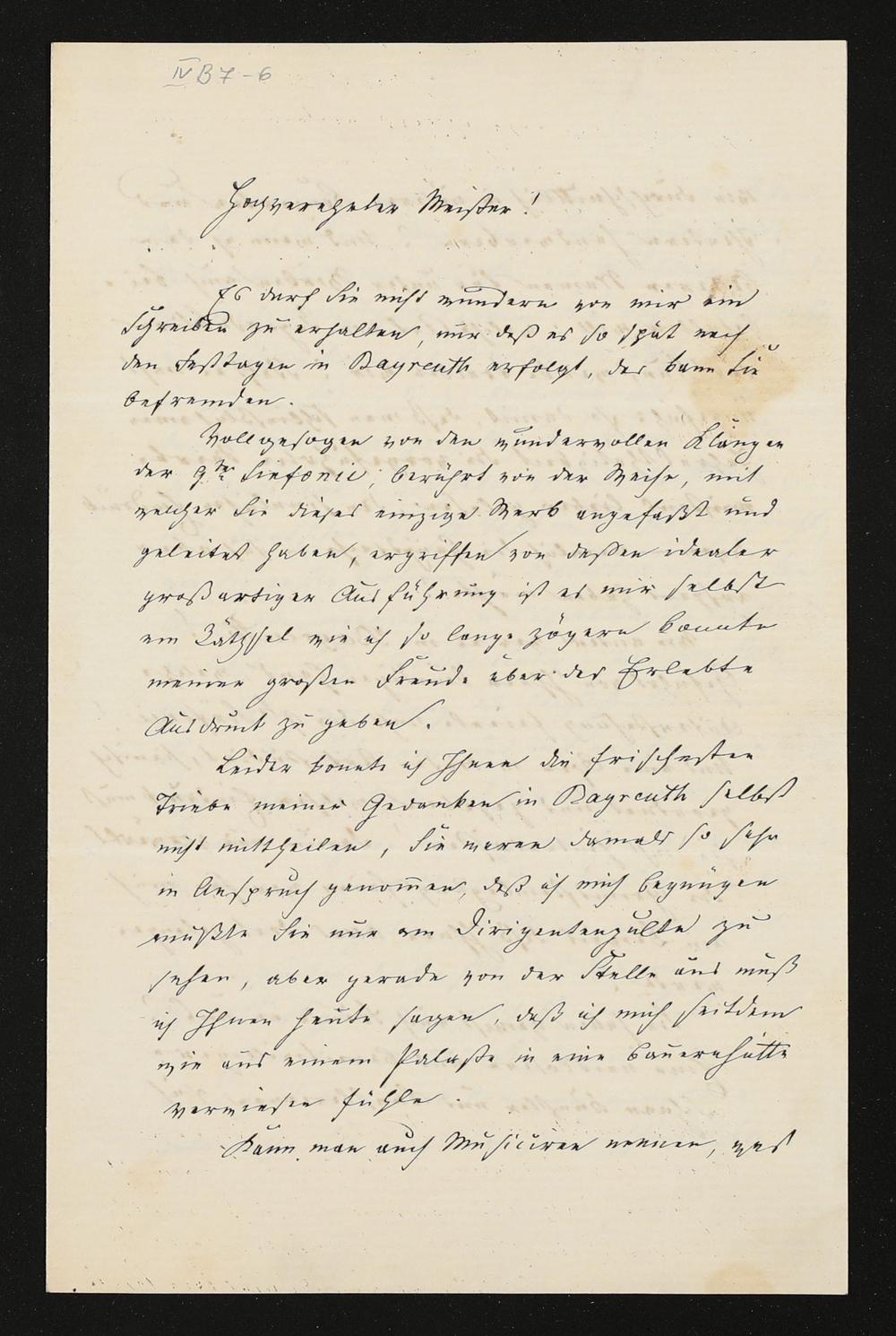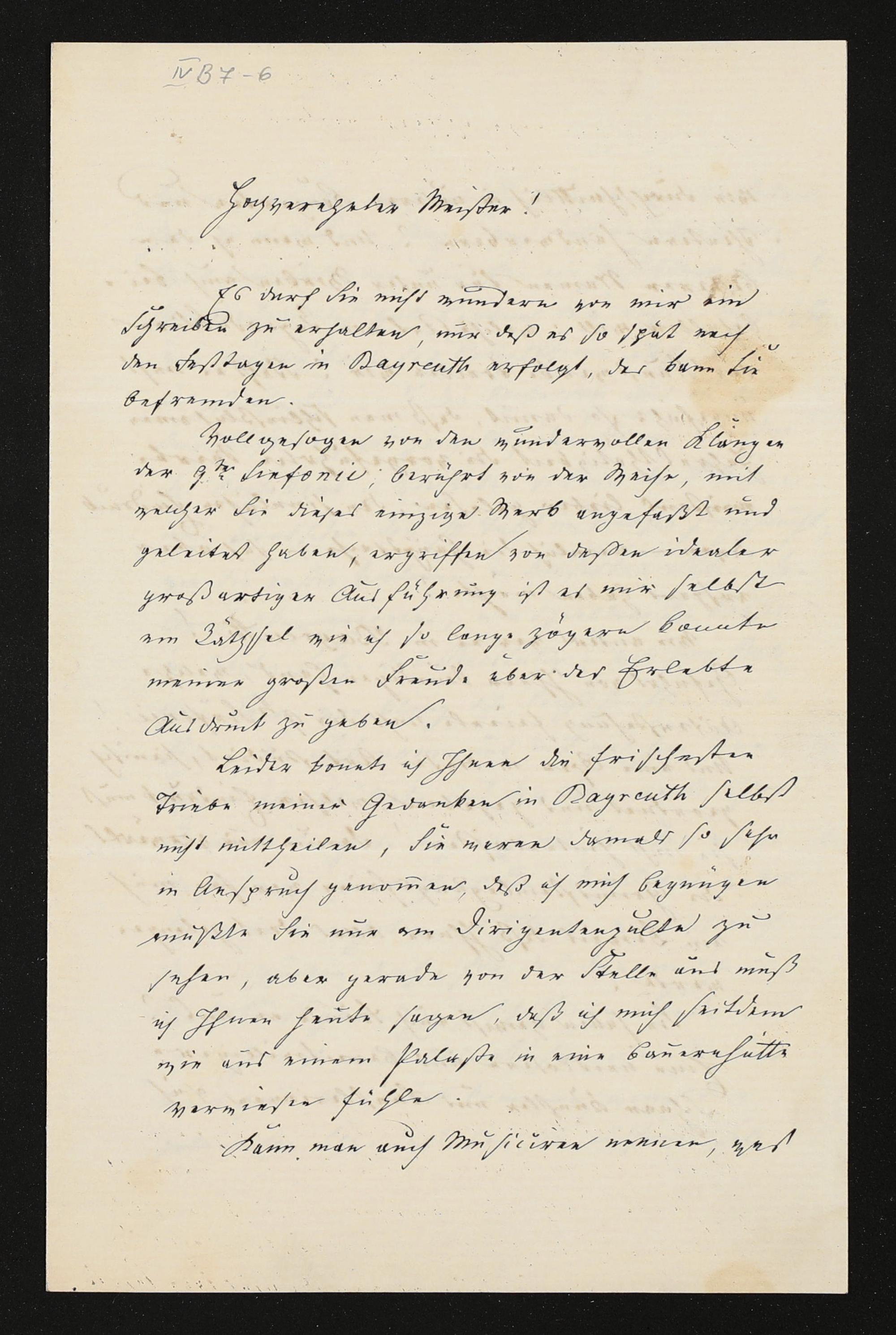 eigenhändiger Brief von Carl Will an Richard Wagner