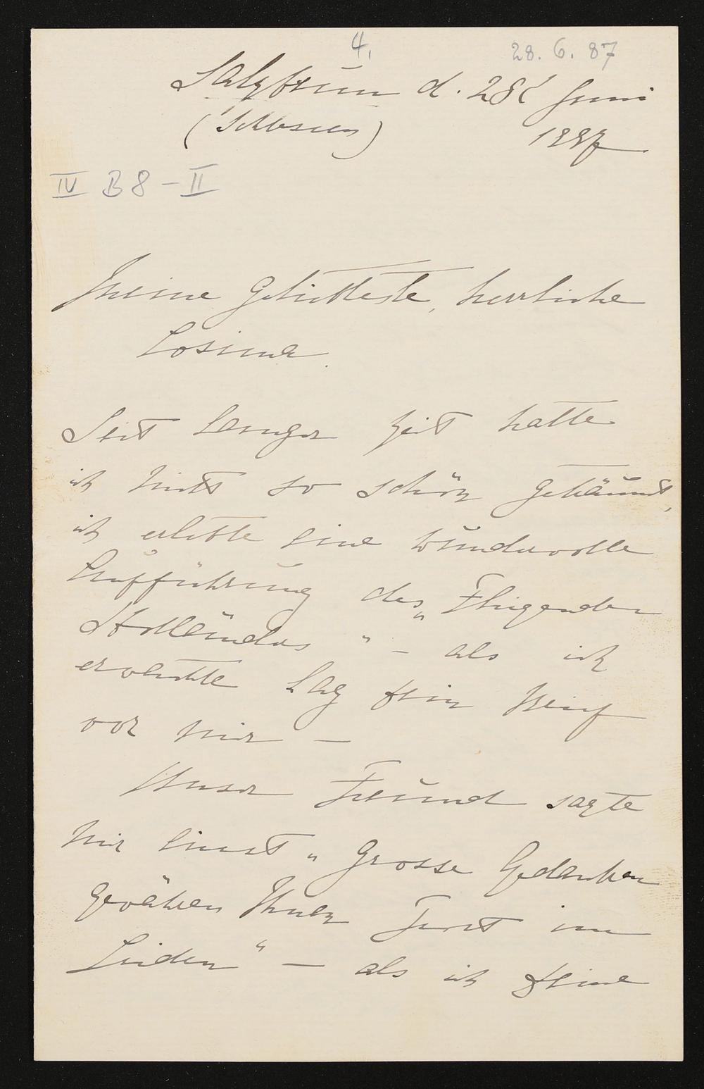 eigenhändiger Brief von Marie Wolkenstein-Trostburg an Cosima Wagner