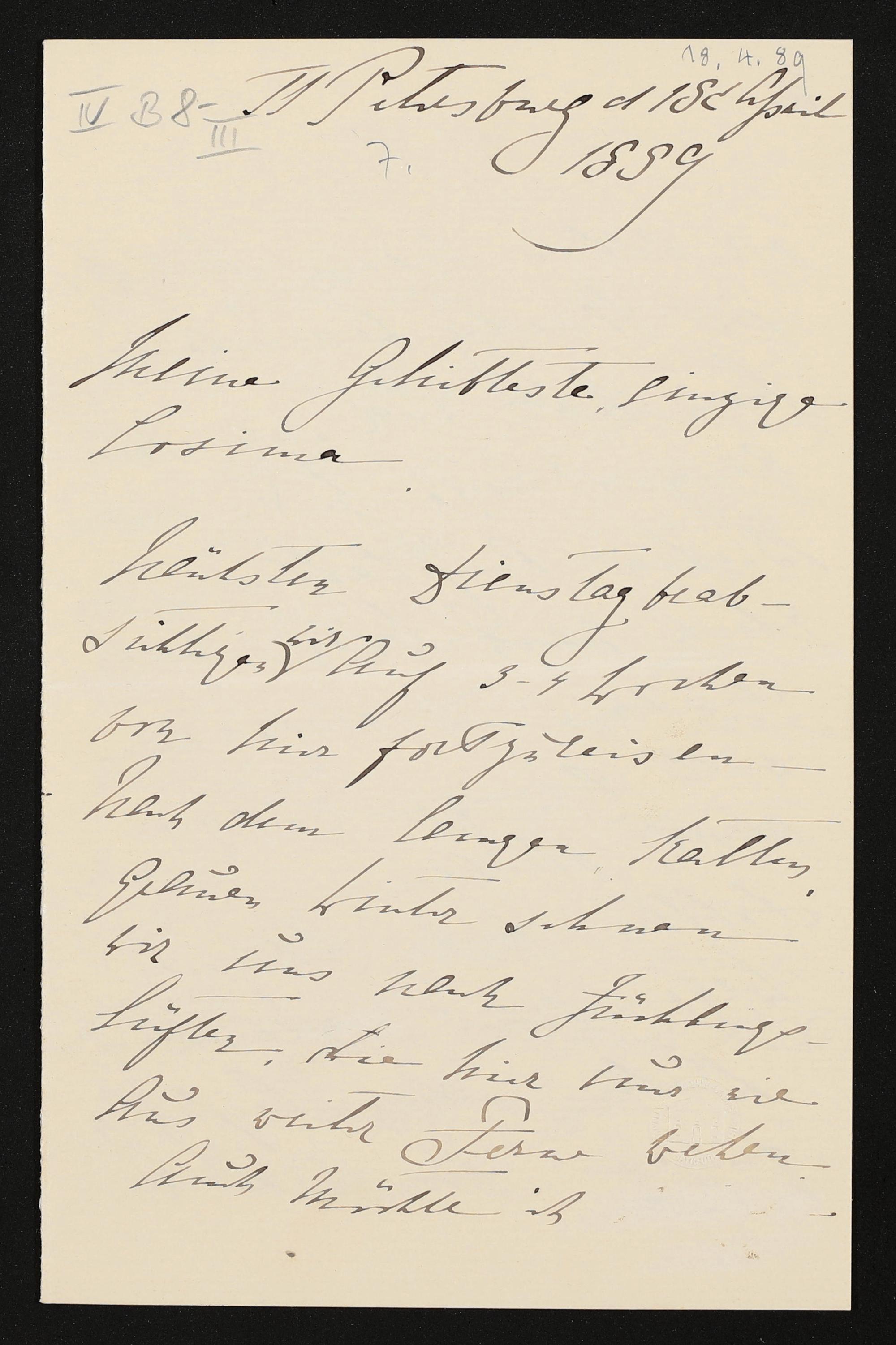 eigenhändiger Brief von Marie Wolkenstein-Trostburg an Cosima Wagner