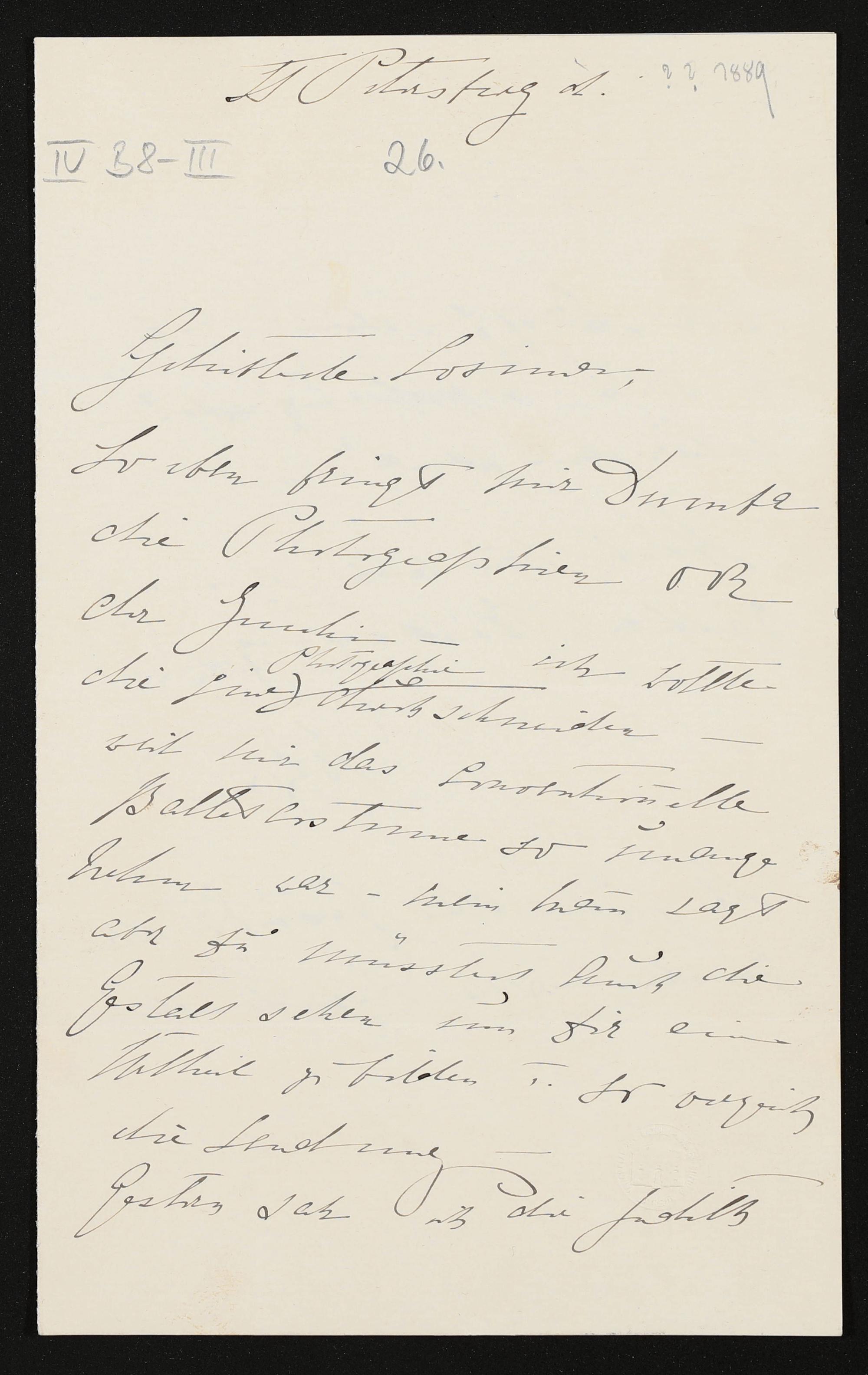eigenhändiger Brief von Marie Wolkenstein-Trostburg an Cosima Wagner