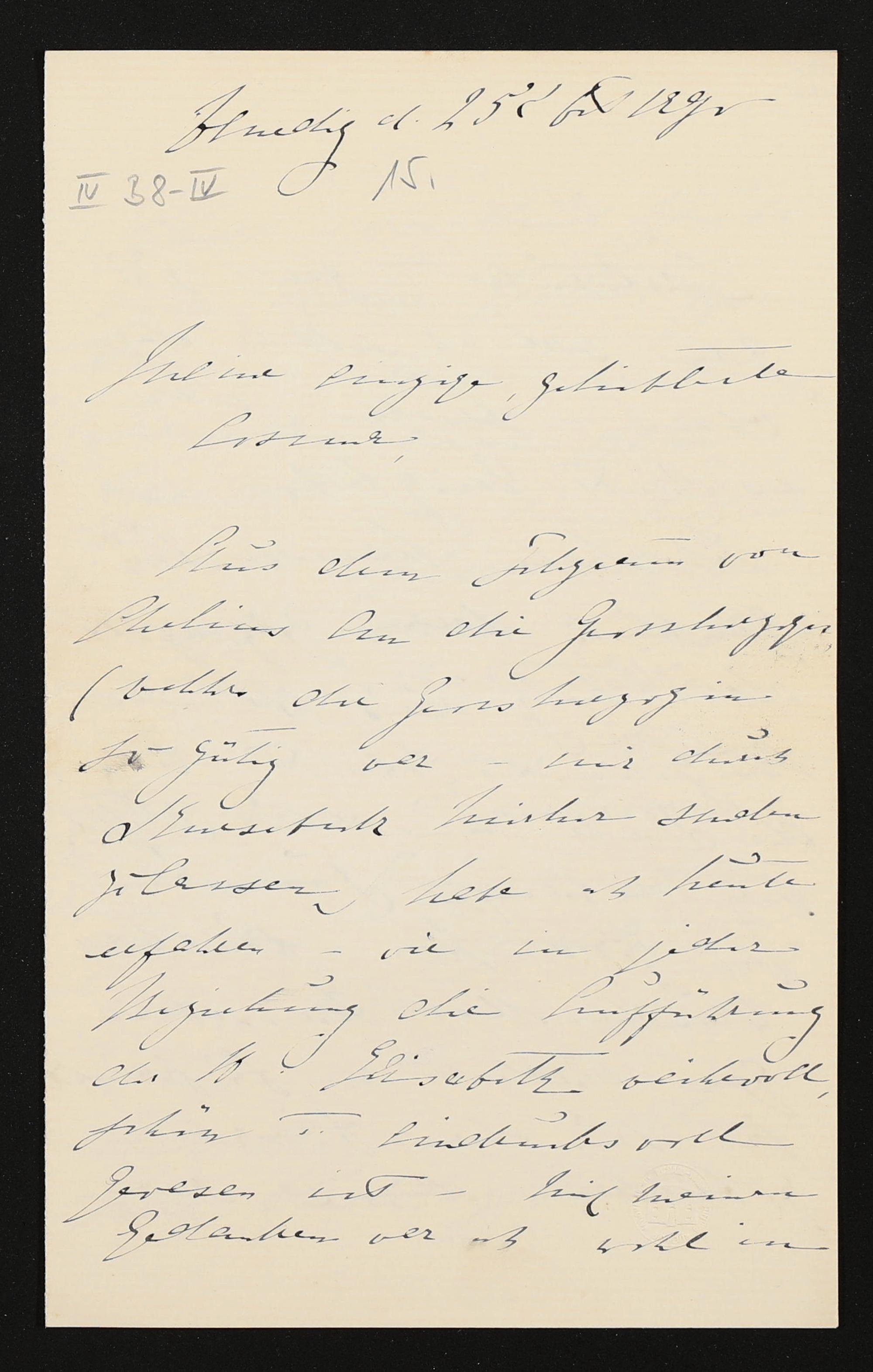 eigenhändiger Brief von Marie Wolkenstein-Trostburg an Cosima Wagner