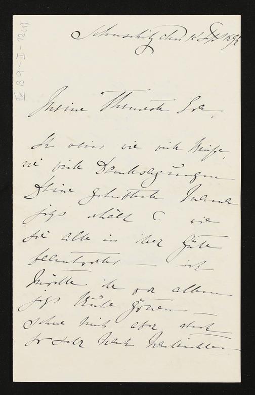eigenhändiger Brief von Marie Wolkenstein-Trostburg an Eva Wagner, beiliegend: weiterer Brief von Marie Wolkenstein-Trostburg an Eva Wagner