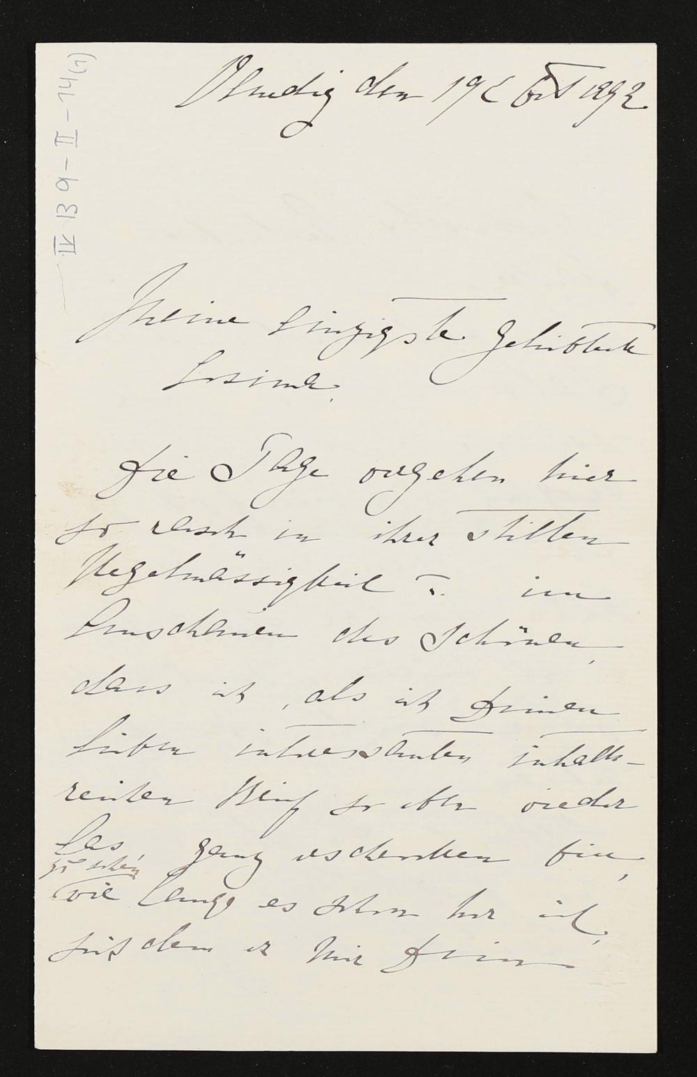 eigenhändiger Brief von Marie Wolkenstein-Trostburg an Cosima Wagner