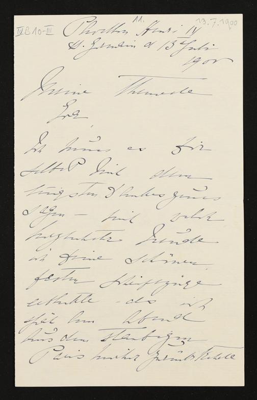 eigenhändiger Brief von Marie Wolkenstein-Trostburg an Eva Wagner