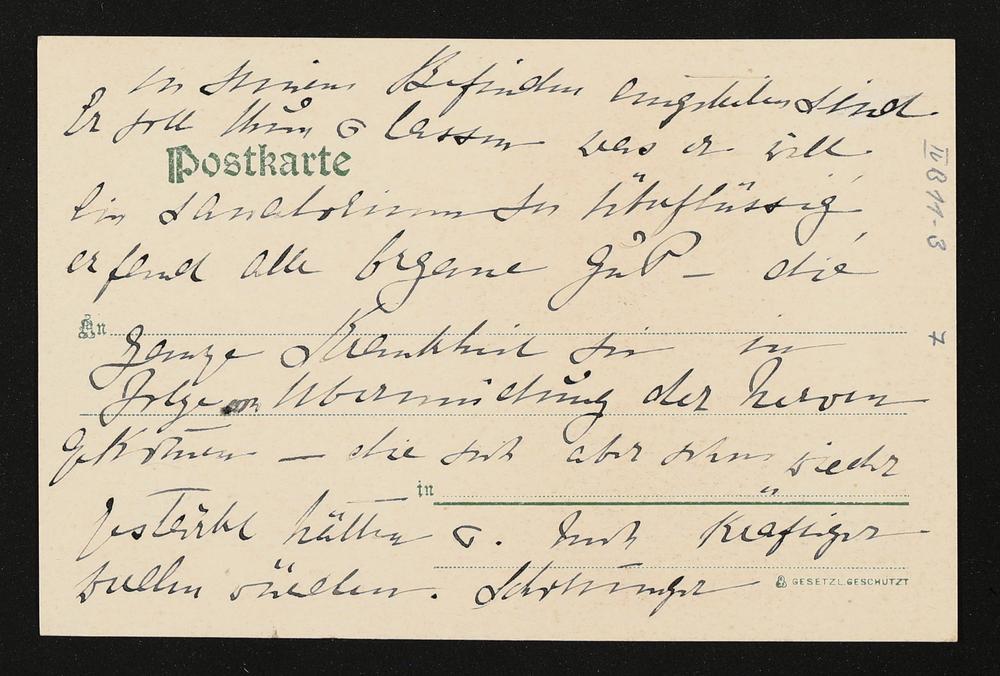 eigenhändige Postkarte von Marie Wolkenstein-Trostburg an Cosima Wagner