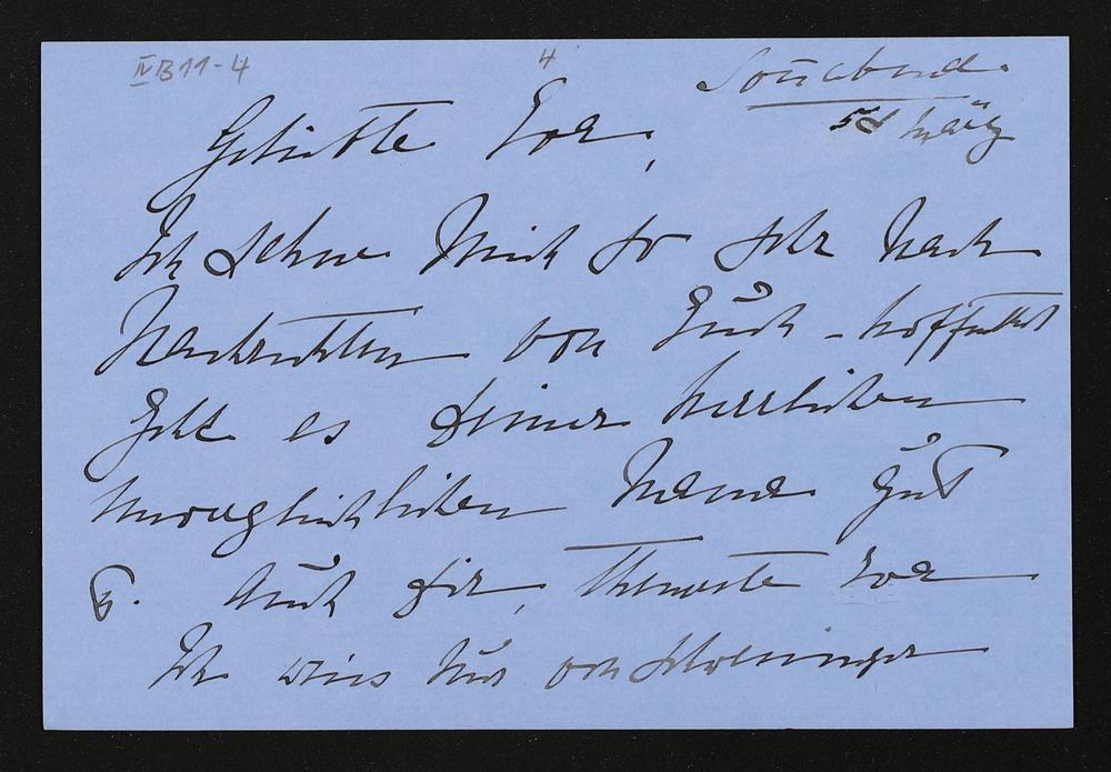 eigenhändige Briefkarte von Marie Wolkenstein-Trostburg an Eva Wagner