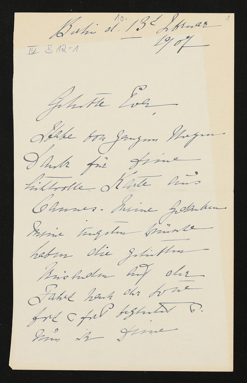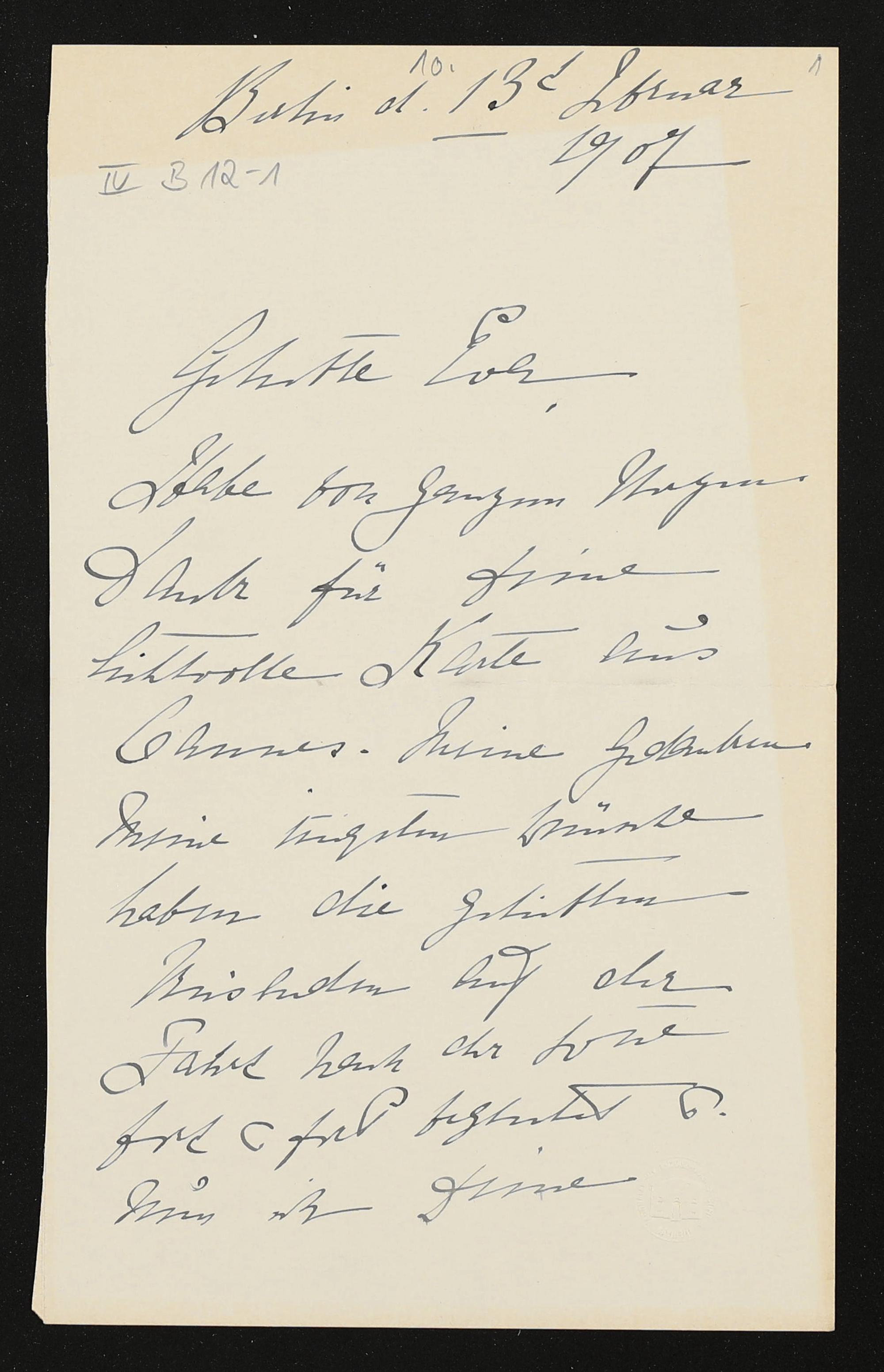 eigenhändiger Brief von Marie von Wolkenstein-Trostburg an Eva Wagner