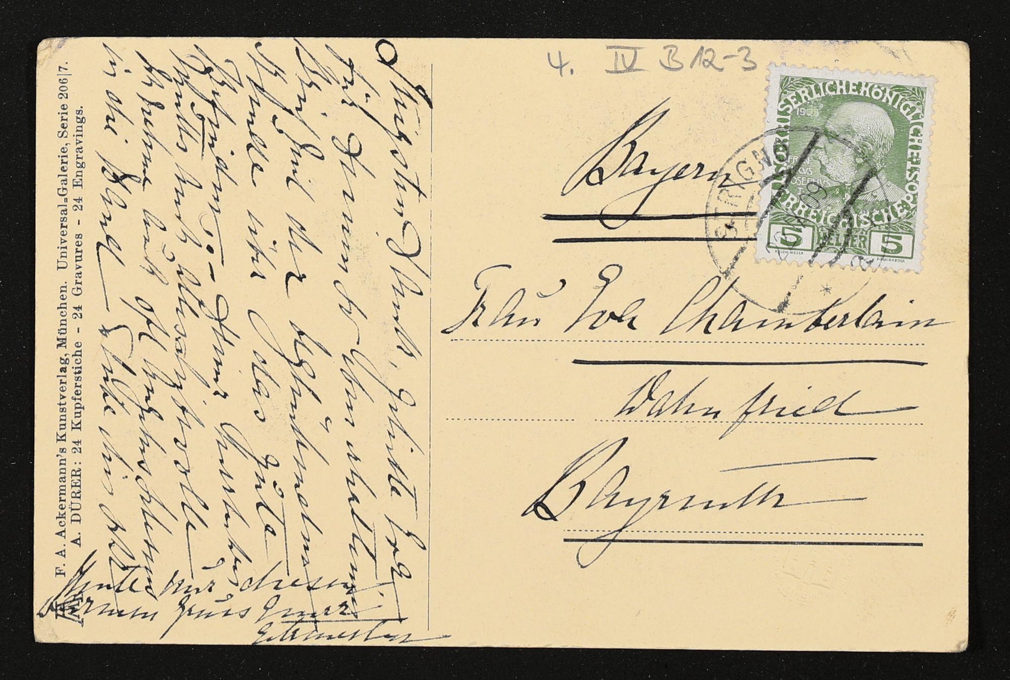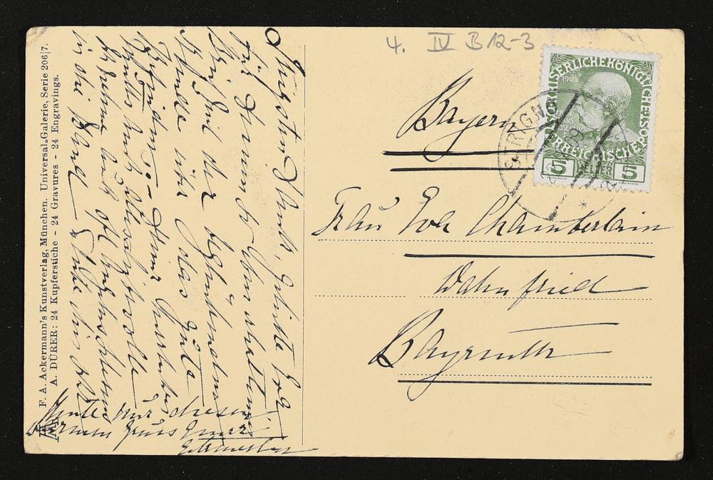 eigenhändige Postkarte von Marie von Wolkenstein-Trostburg an Eva Chamberlain
