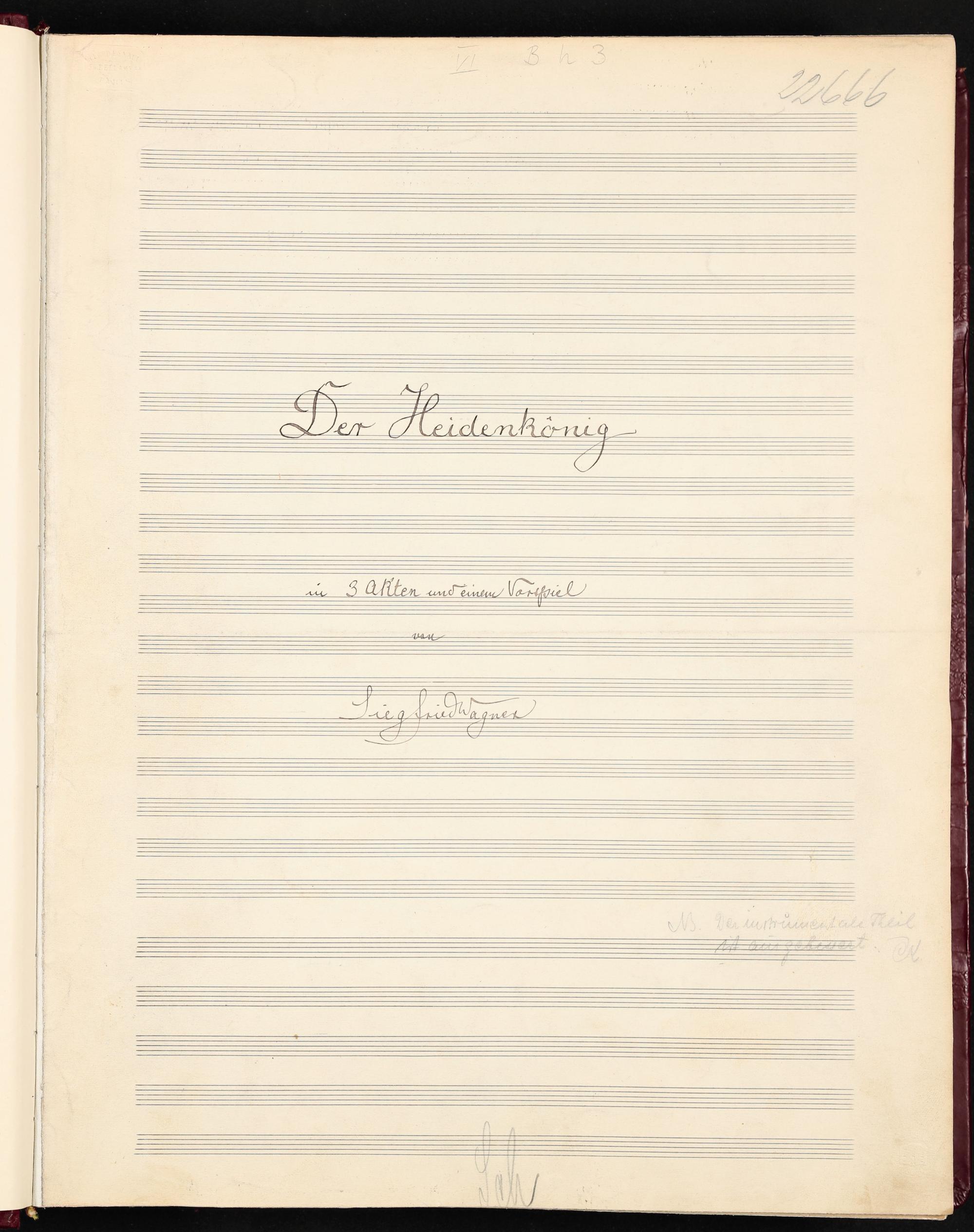 Der Heidenkönig : in drei Akten und einem Vorspiel, eigenhändige Partitur von Siegfried Wagner
