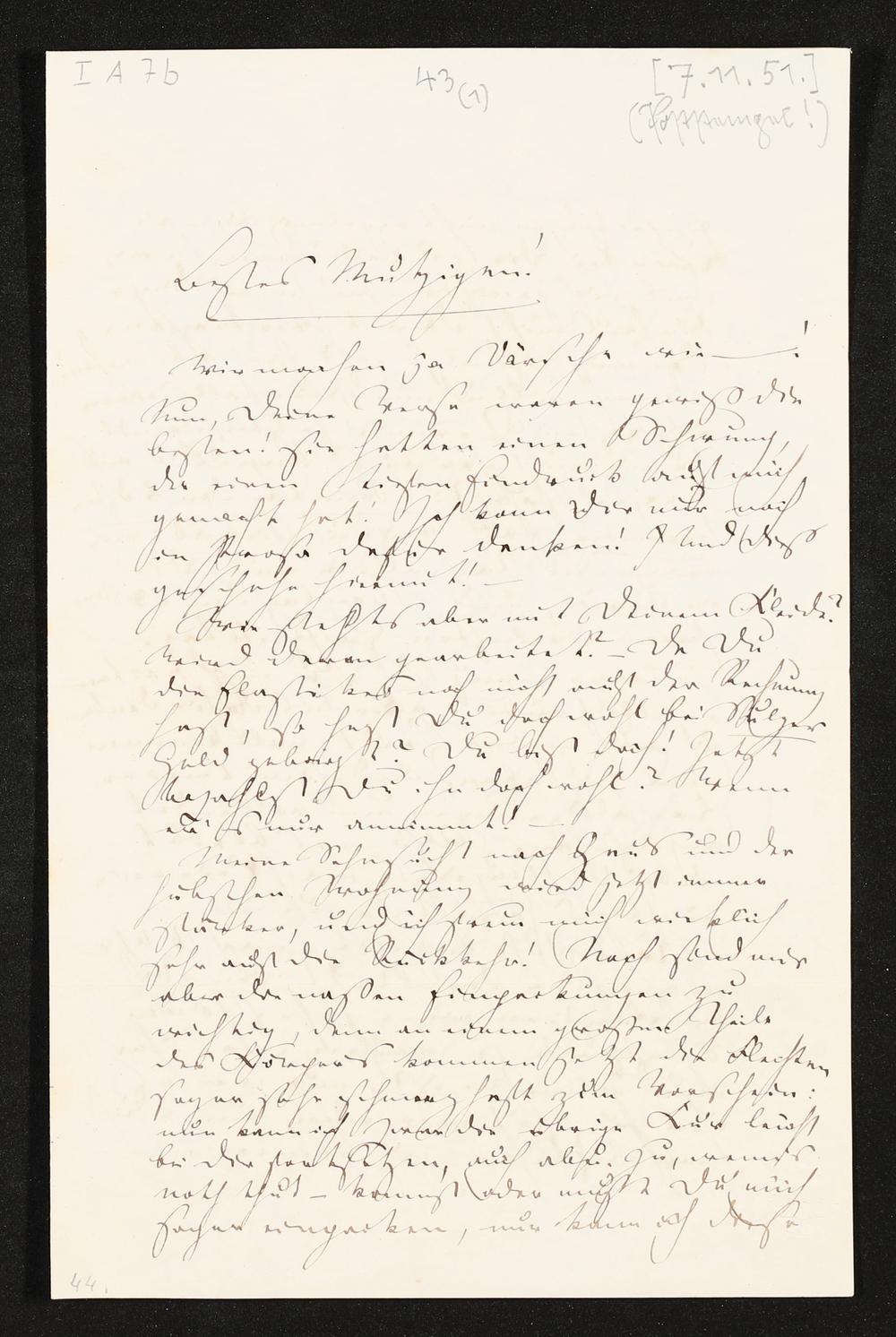eigenhändiger Brief von Richard Wagner an Minna Wagner