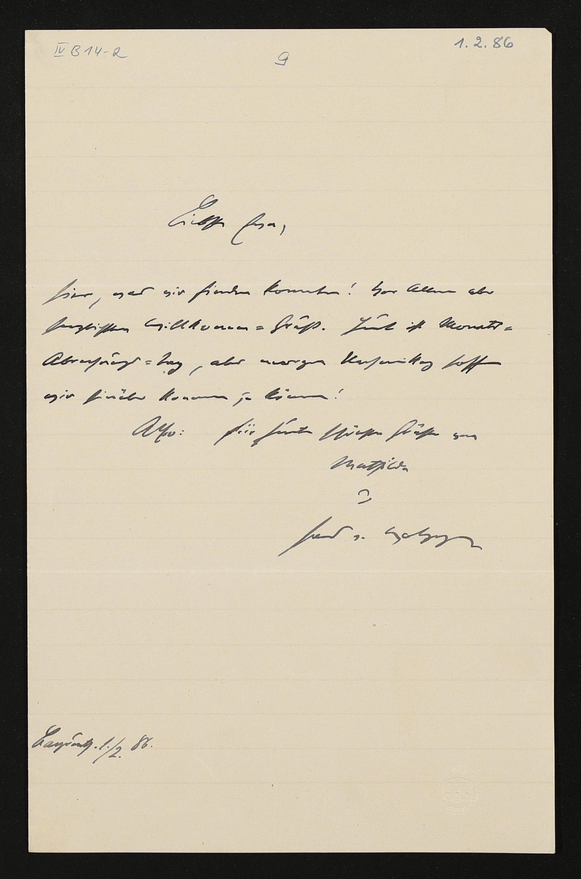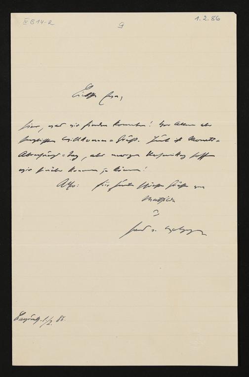 eigenhändiger Brief von Hans von Wolzogen an Eva Wagner