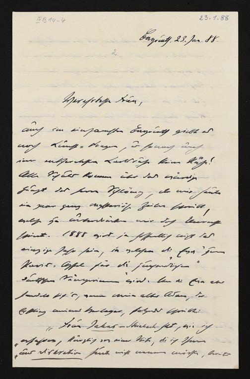 eigenhändiger Brief von Hans von Wolzogen an Cosima Wagner