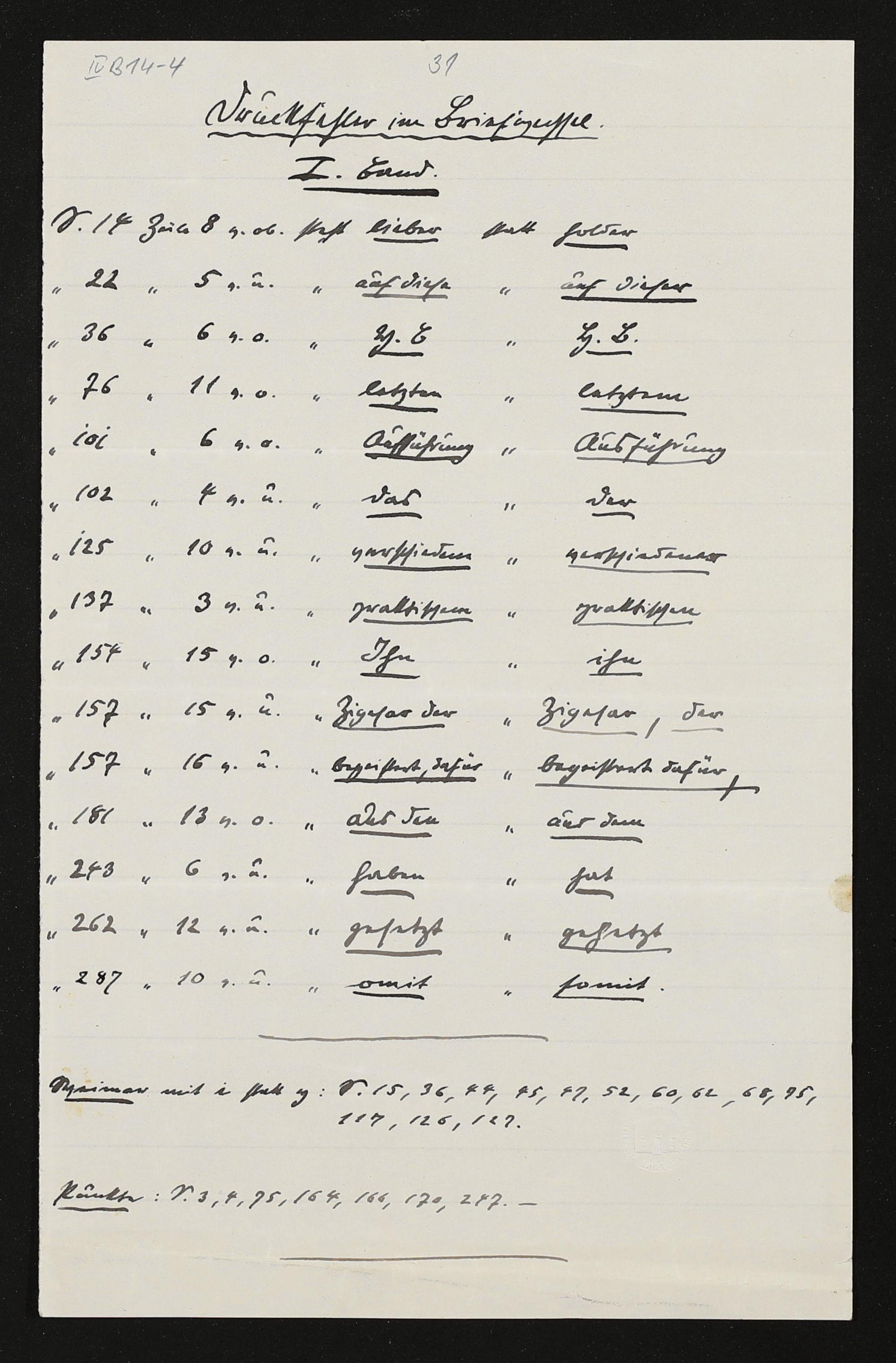 Druckfehler im Briefwechsel, I. Band., eigenhändiges Schriftstück von Hans von Wolzogen
