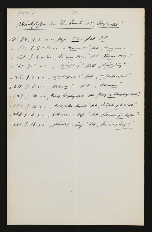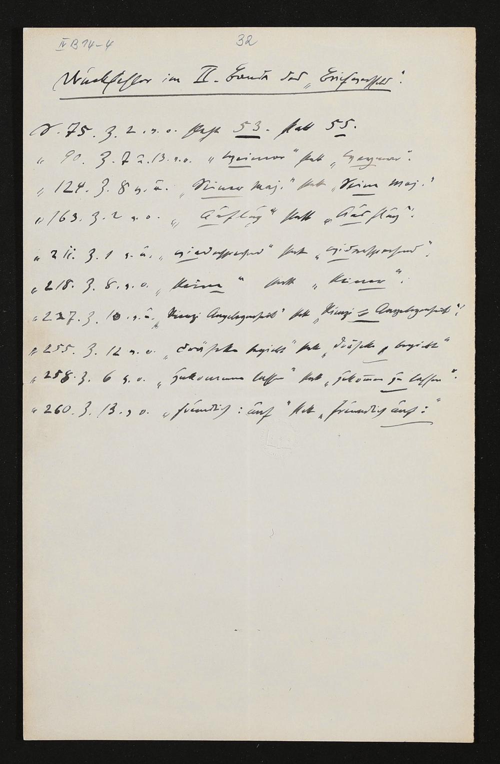 Druckfehler im II. Band der Briefwechsel, eigenhändiges Schriftstück von Hans von Wolzogen