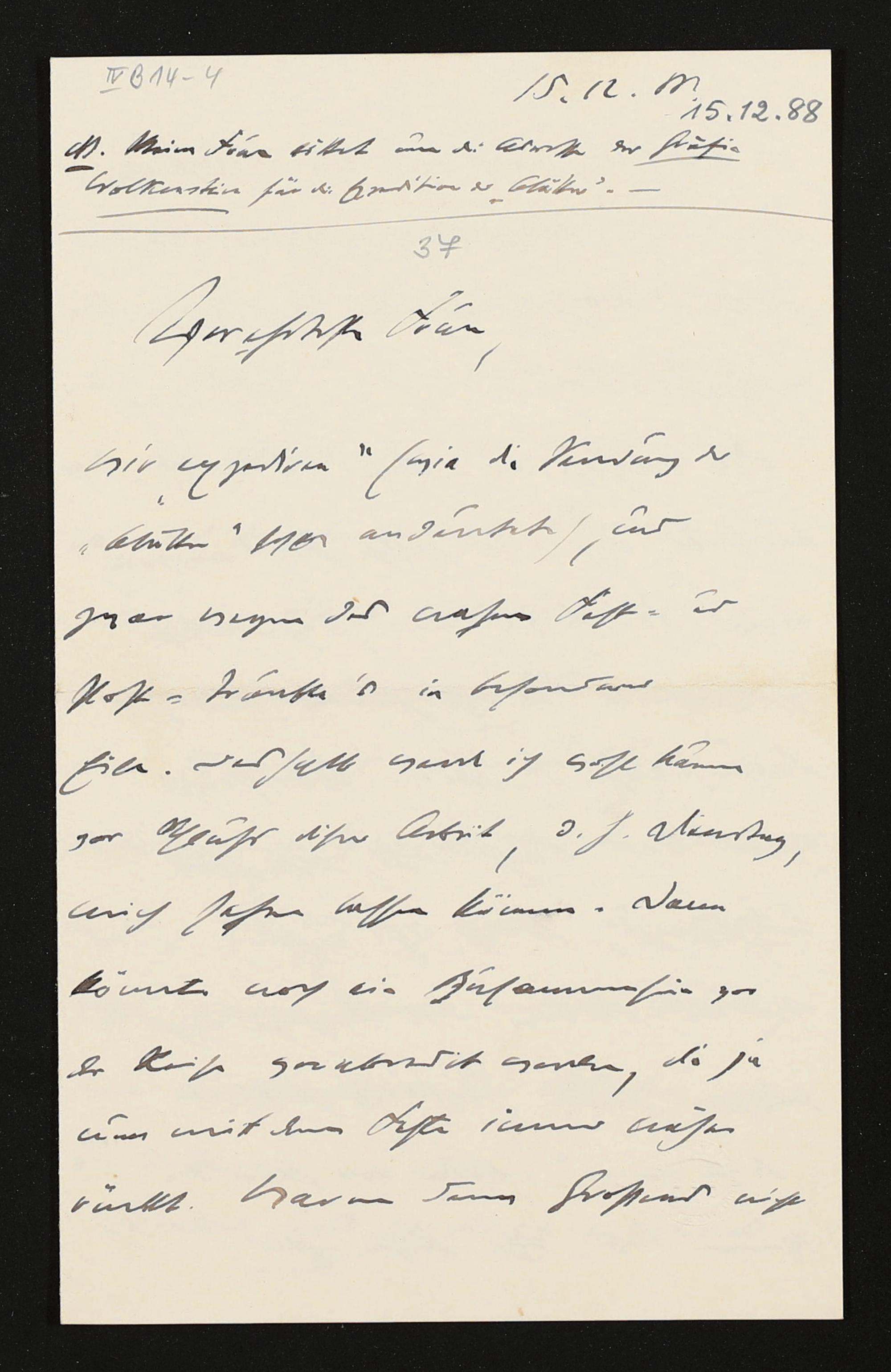 eigenhändiger Brief von Hans von Wolzogen an Cosima Wagner