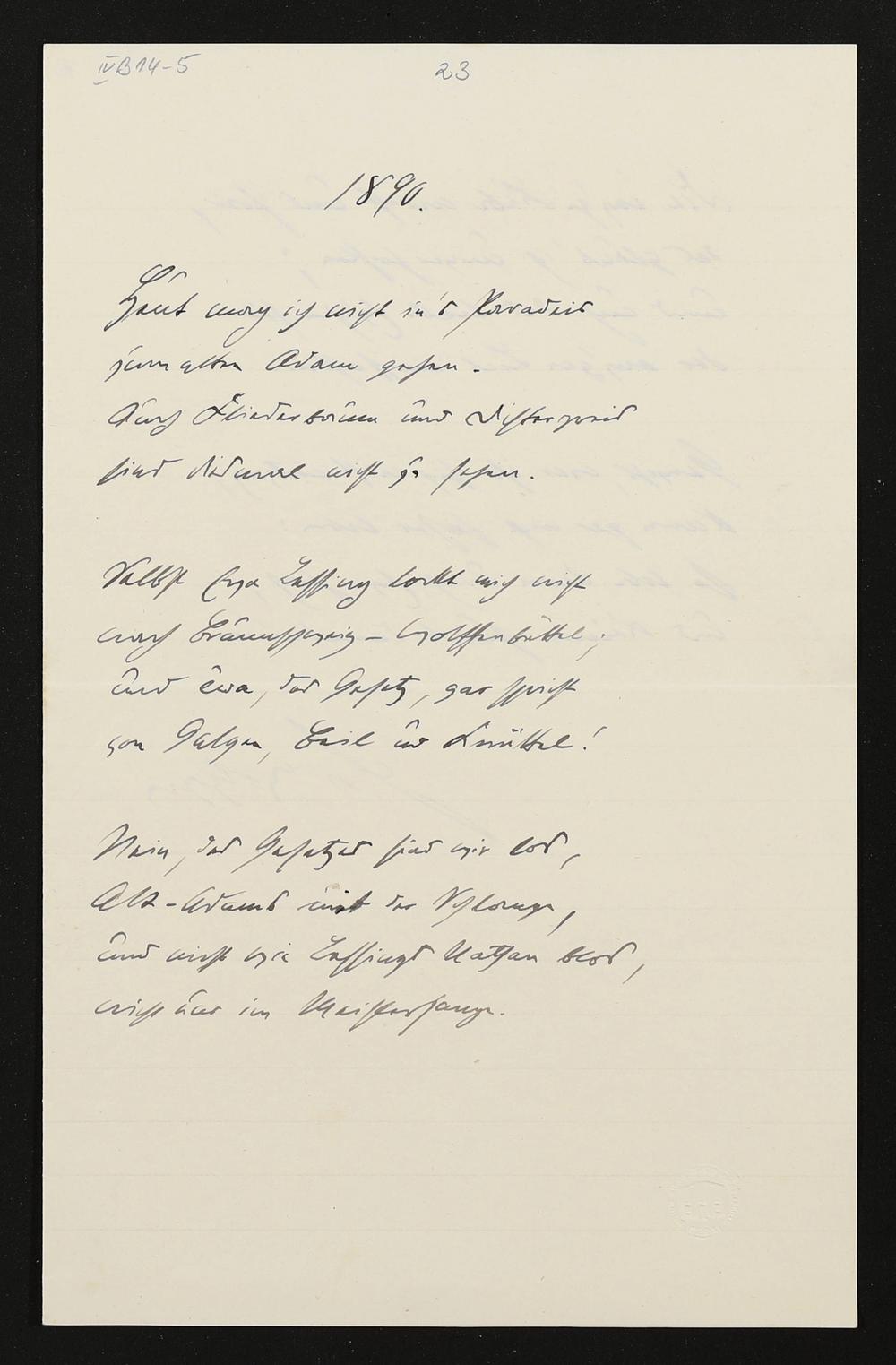 eigenhändiges Gedicht "1890" von Hans von Wolzogen