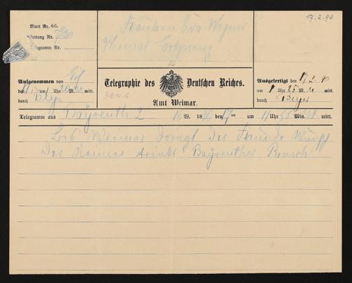 Telegramm von Hans von Wolzogen an Cosima Wagner
