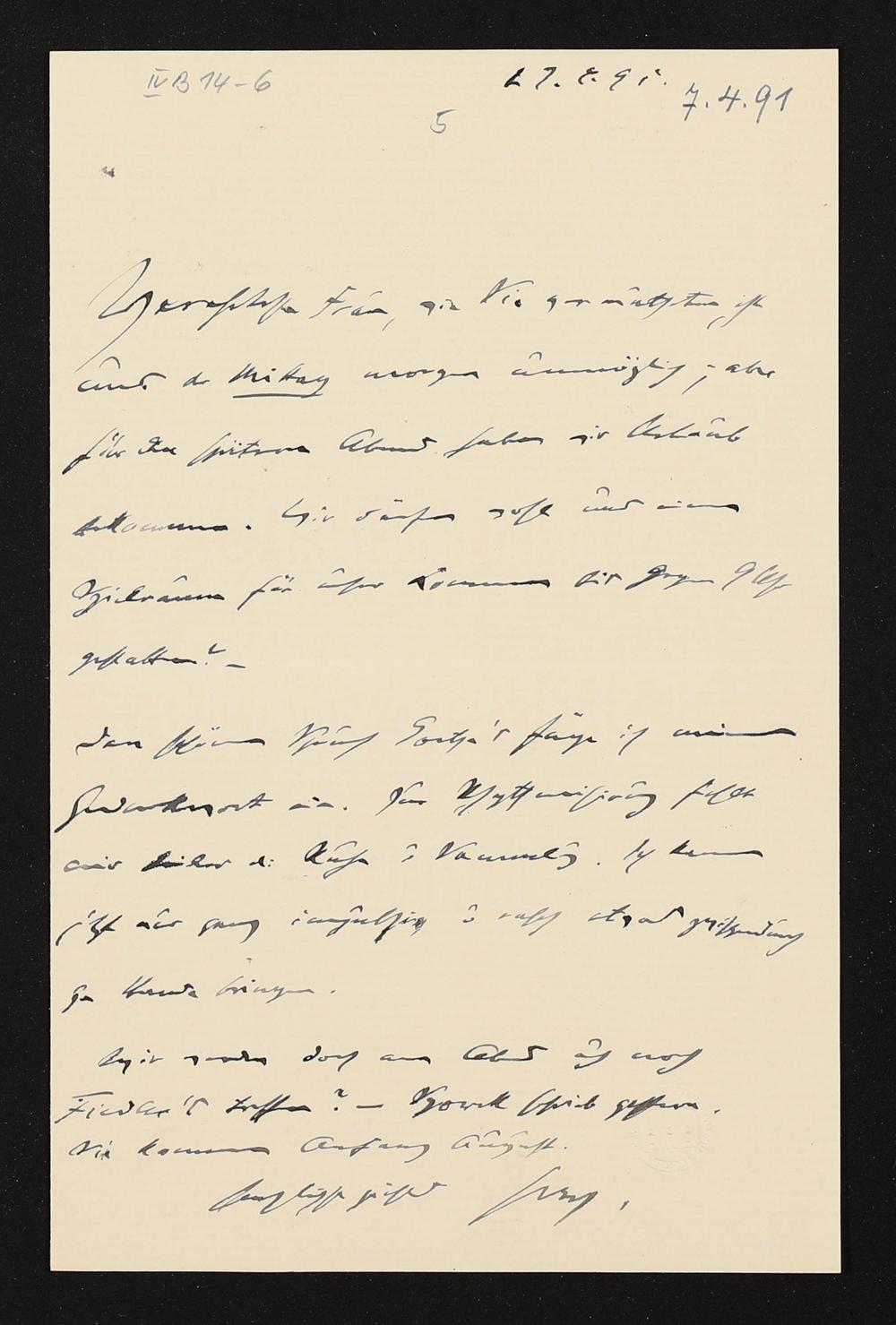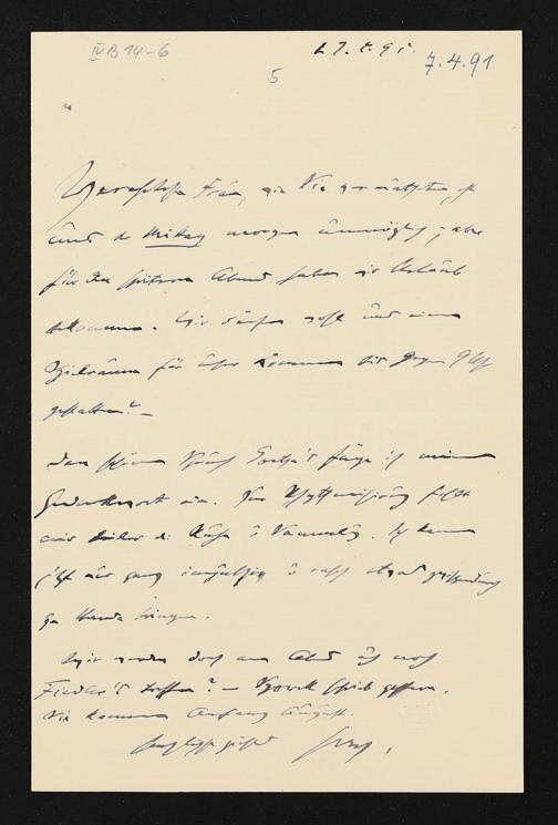 eigenhändiger Brief von Hans von Wolzogen an Cosima Wagner