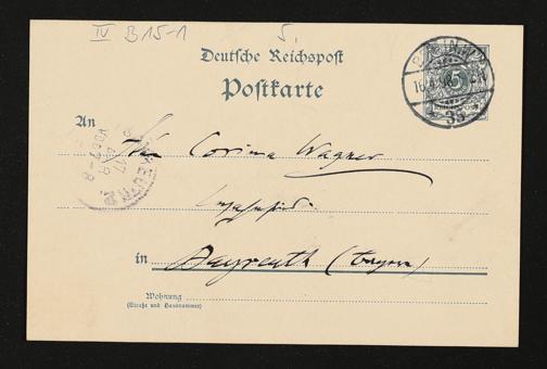 eigenhändige Postkarte von Hans von Wolzogen an Cosima Wagner