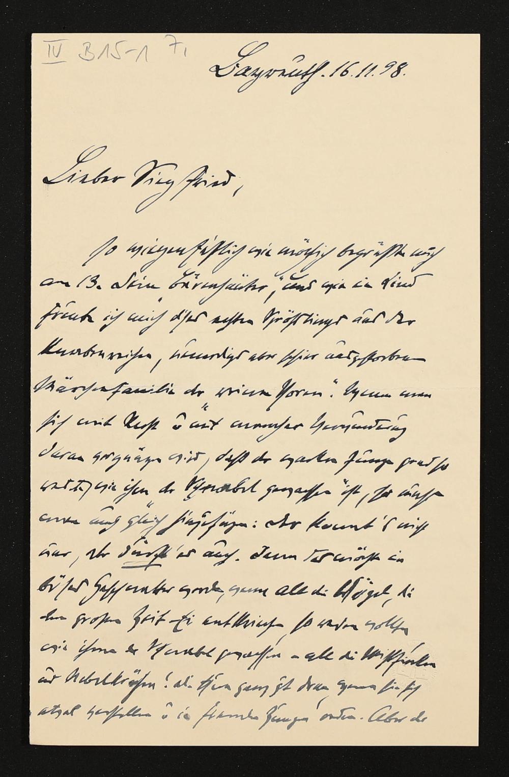 eigenhändiger Brief von Hans von Wolzogen an Cosima Wagner