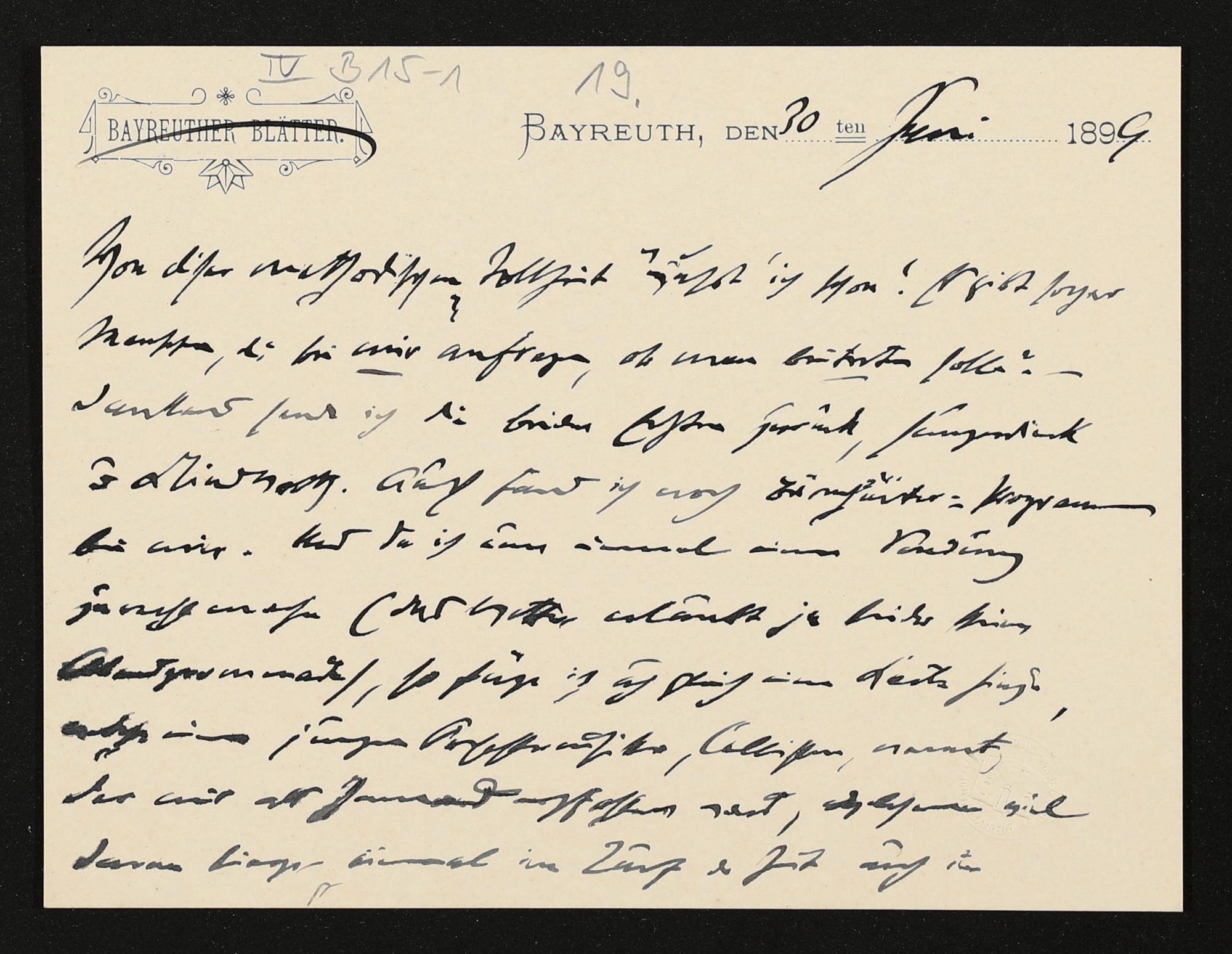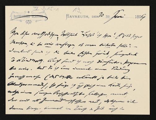 eigenhändige Briefkarte von Hans von Wolzogen an Cosima Wagner