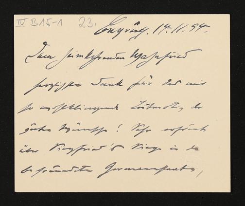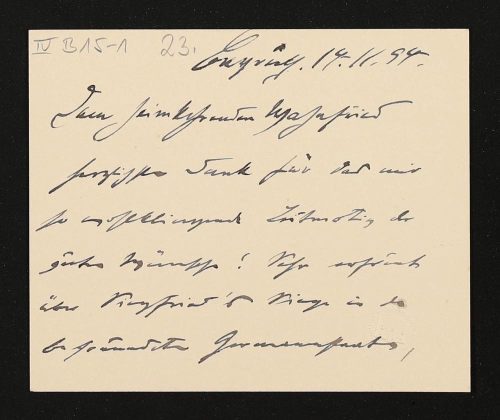 eigenhändige Briefkarte von Hans von Wolzogen an Cosima Wagner