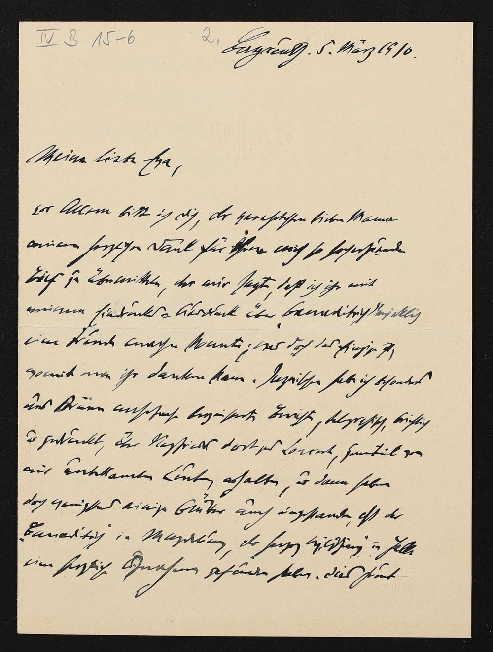 eigenhändiger Brief von Hans von Wolzogen an Eva Chamberlain