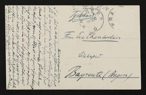 eigenhändige Postkarte von Hans von Wolzogen an Eva Chamberlain