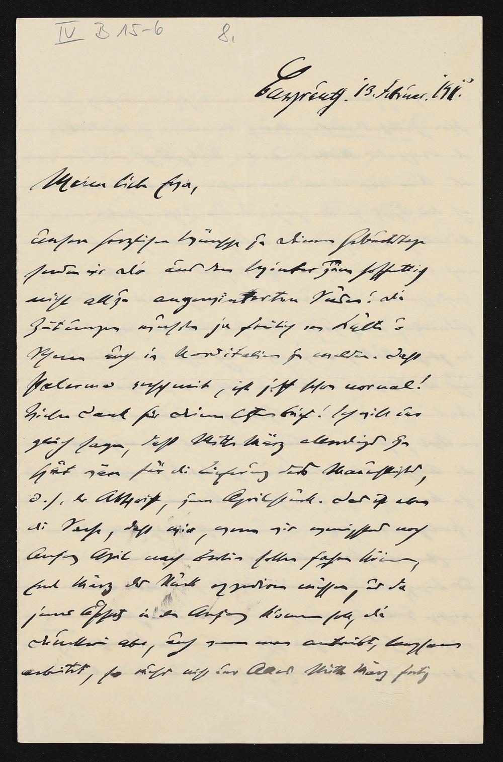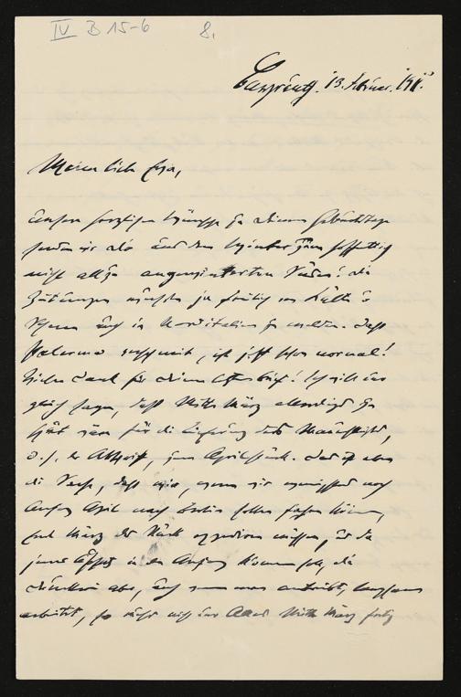 eigenhändiger Brief von Hans von Wolzogen an Eva Chamberlain