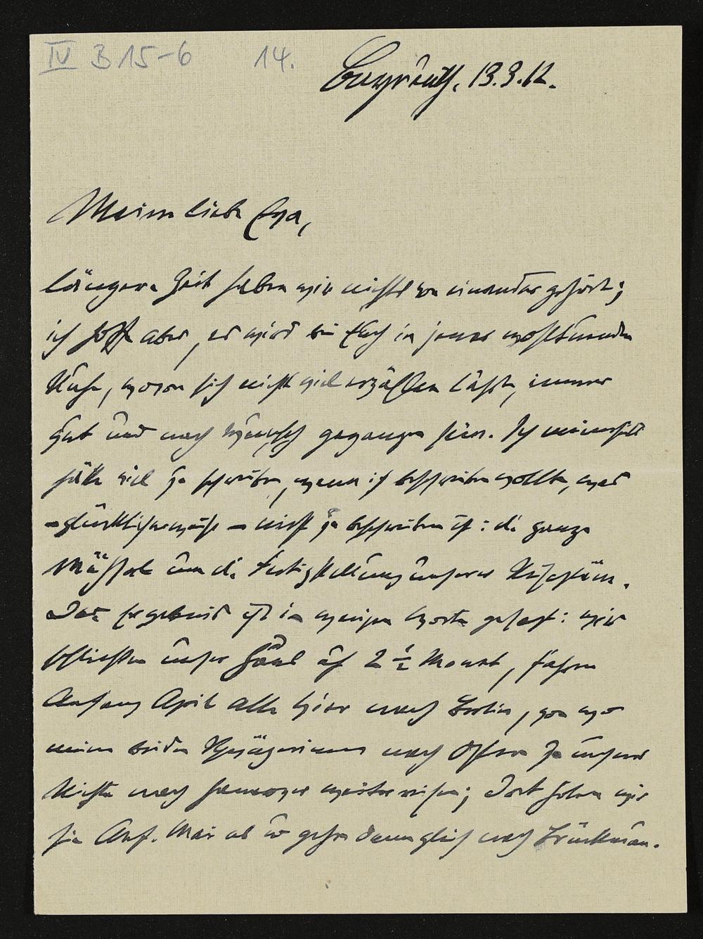 eigenhändiger Brief von Hans von Wolzogen an Eva Chamberlain