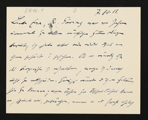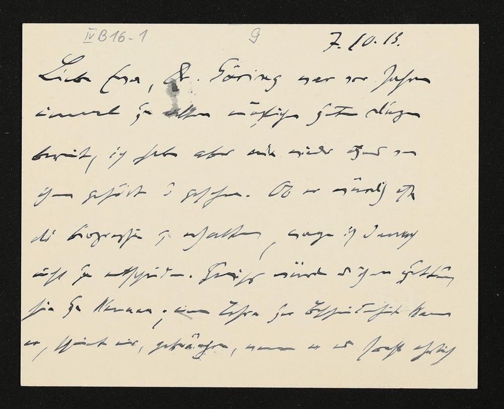 eigenhändige Briefkarte von Hans von Wolzogen an Eva Chamberlain