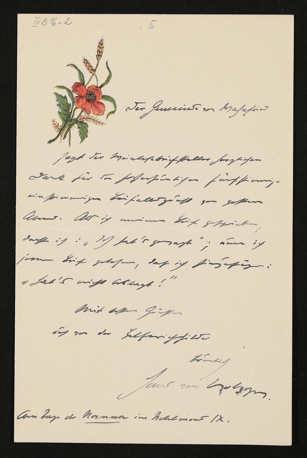 eigenhändiger Brief von Hans von Wolzogen an Haus Wahnfried