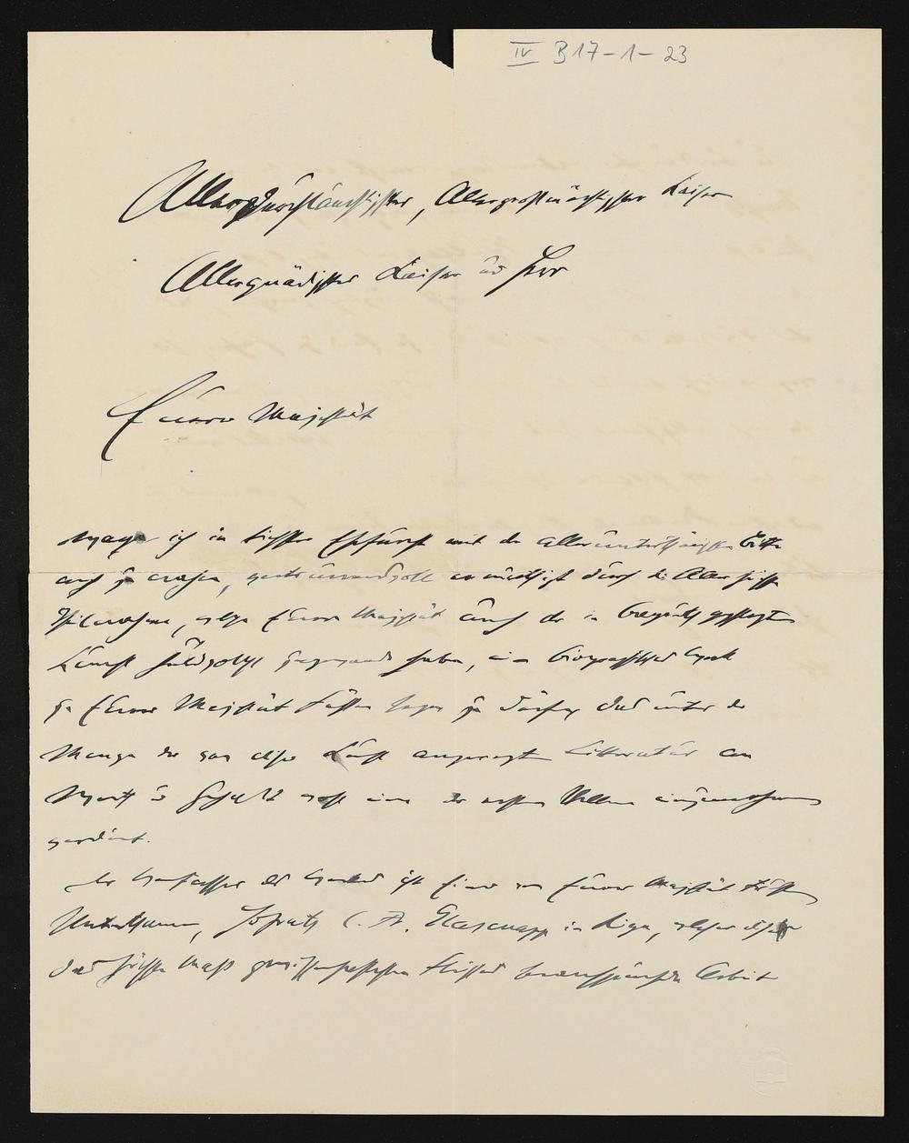 eigenhändiger Brief von Hans von Wolzogen mutmaßlich an Kaiser Wilhelm II.