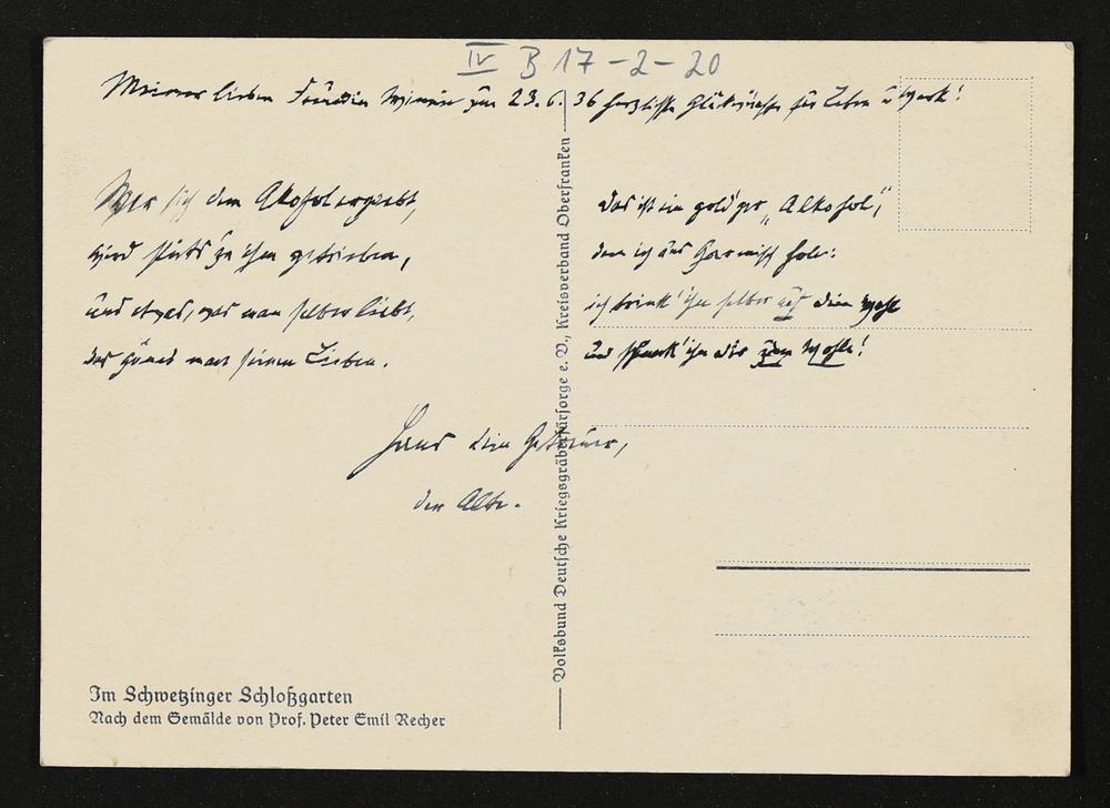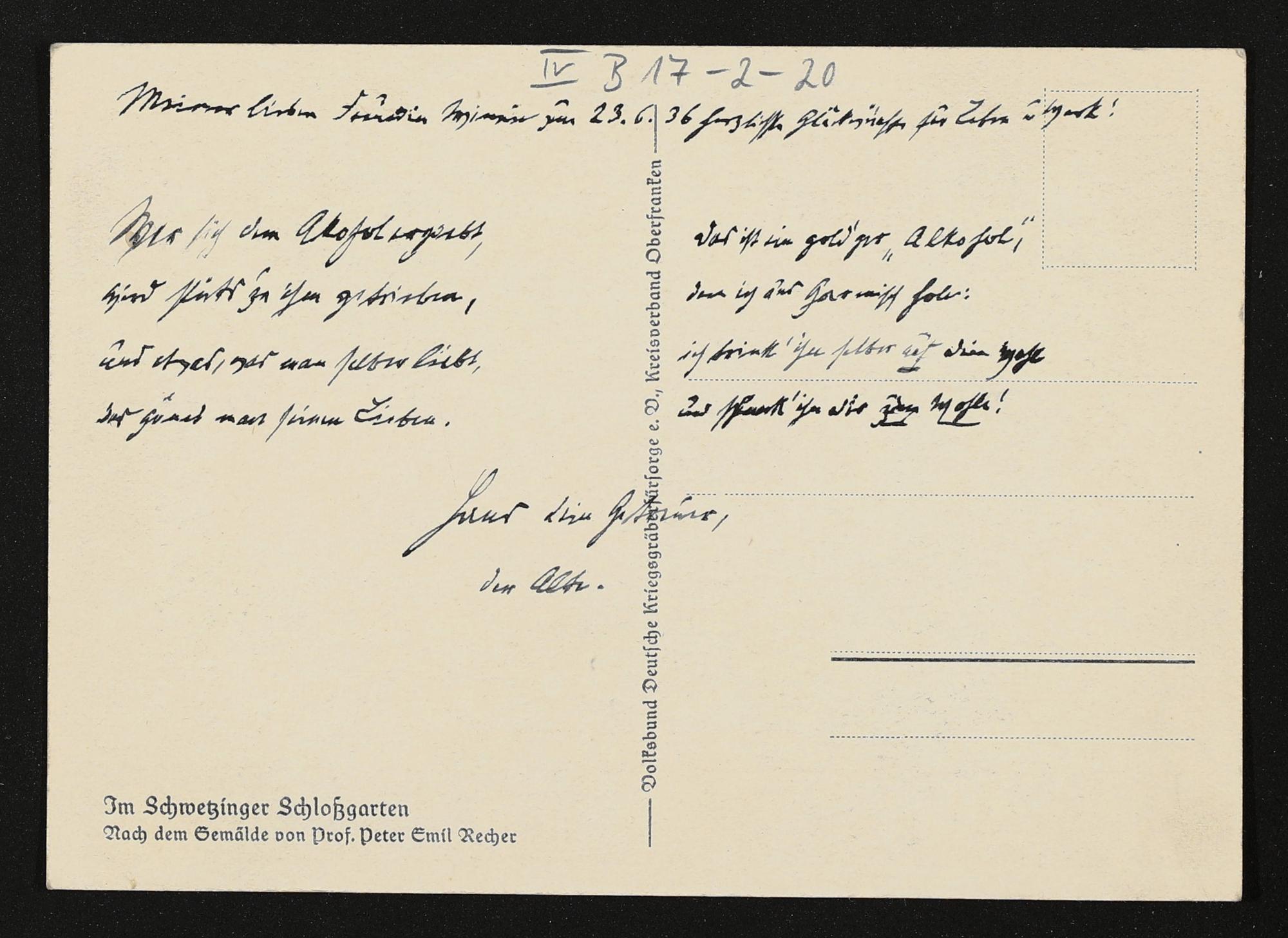 eigenhändige Postkarte von Hans von Wolzogen an Winifred Wagner
