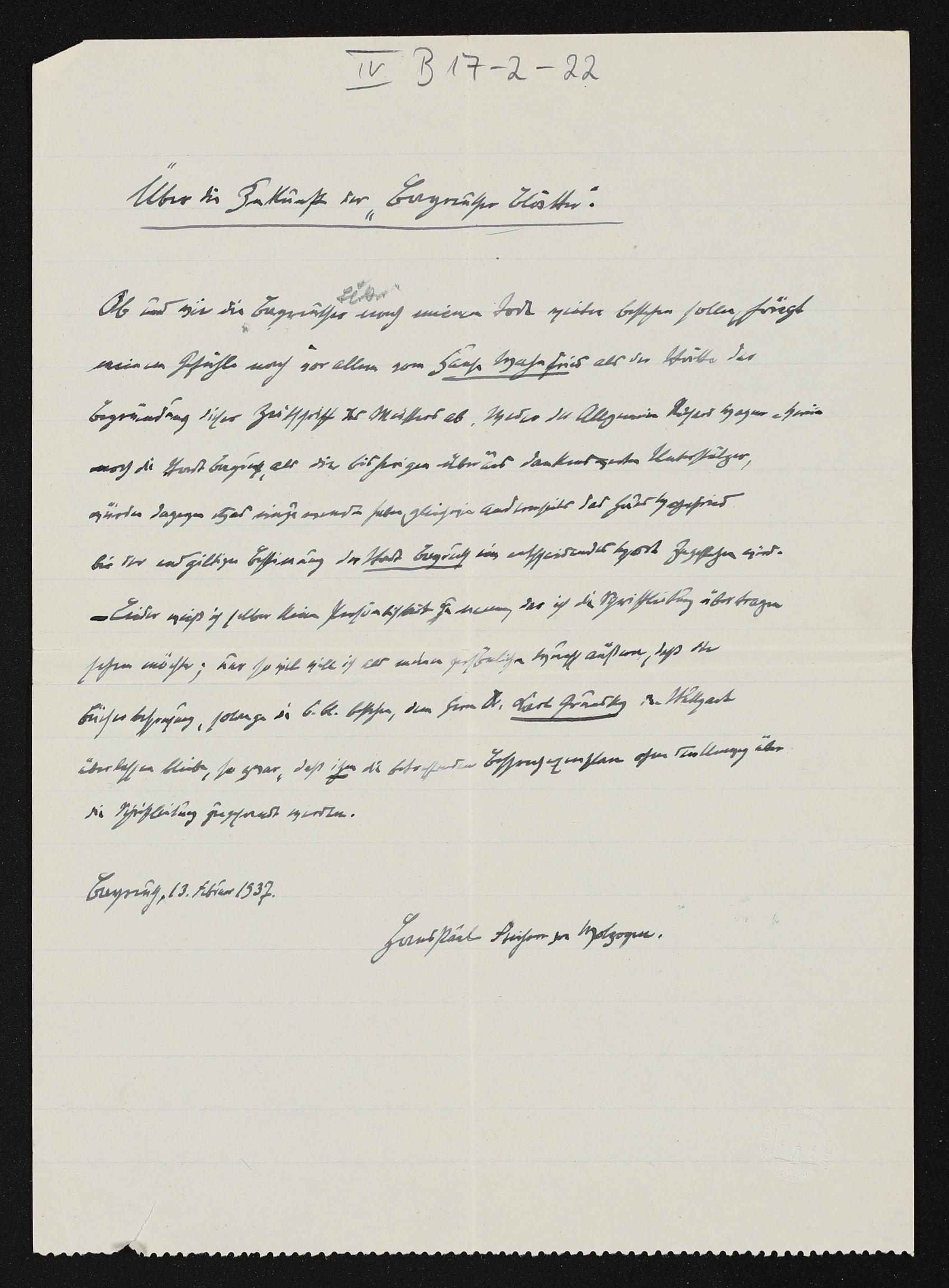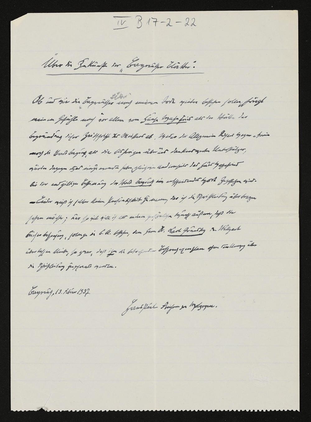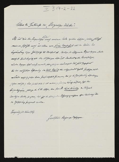 Über die Zukunft der "Bayreuther Blätter", eigenhändiges Schriftstück von Hans von Wolzogen