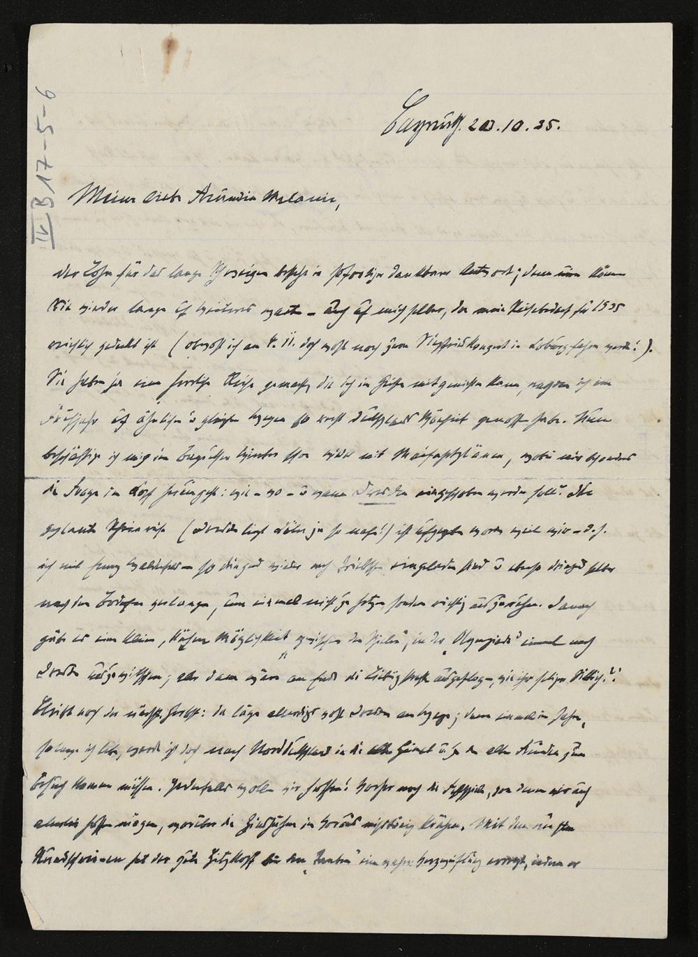 eigenhändiger Brief von Hans von Wolzogen mutmaßlich an Melanie Chrambach