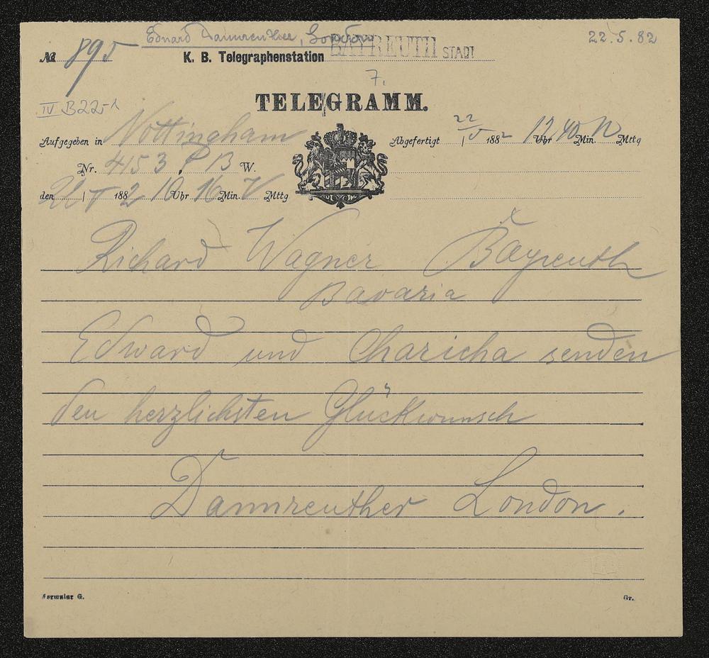 Telegramm von Eduard Dannreuther an Richard Wagner