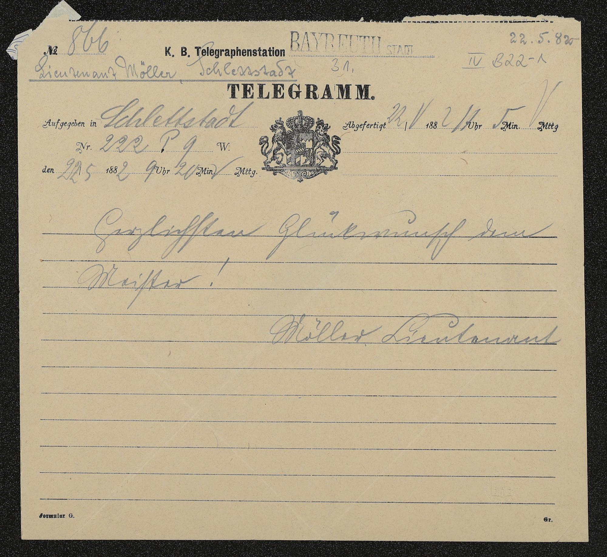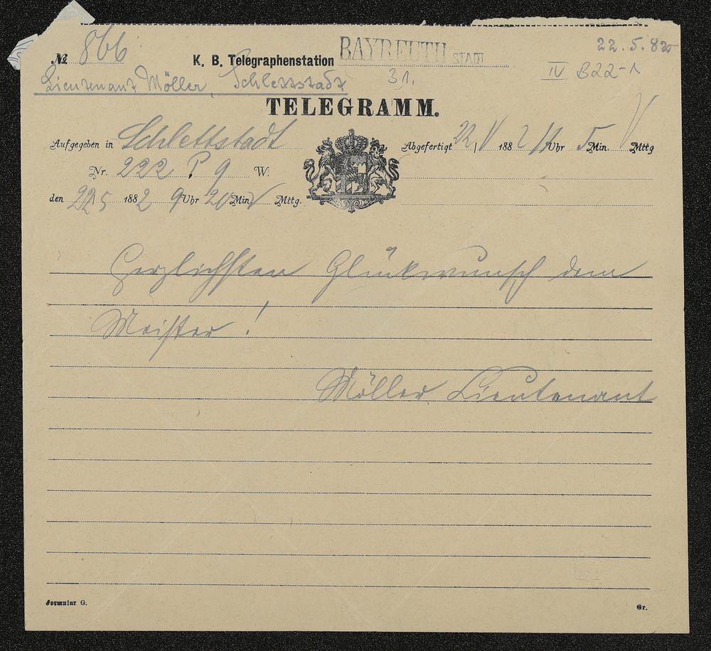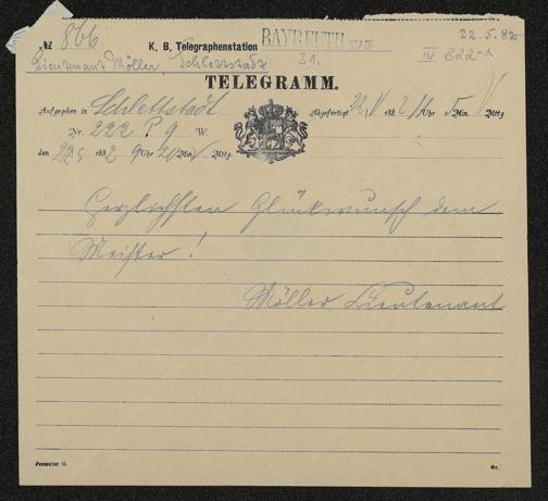 Telegramm von Lieutnant Möller an Richard Wagner