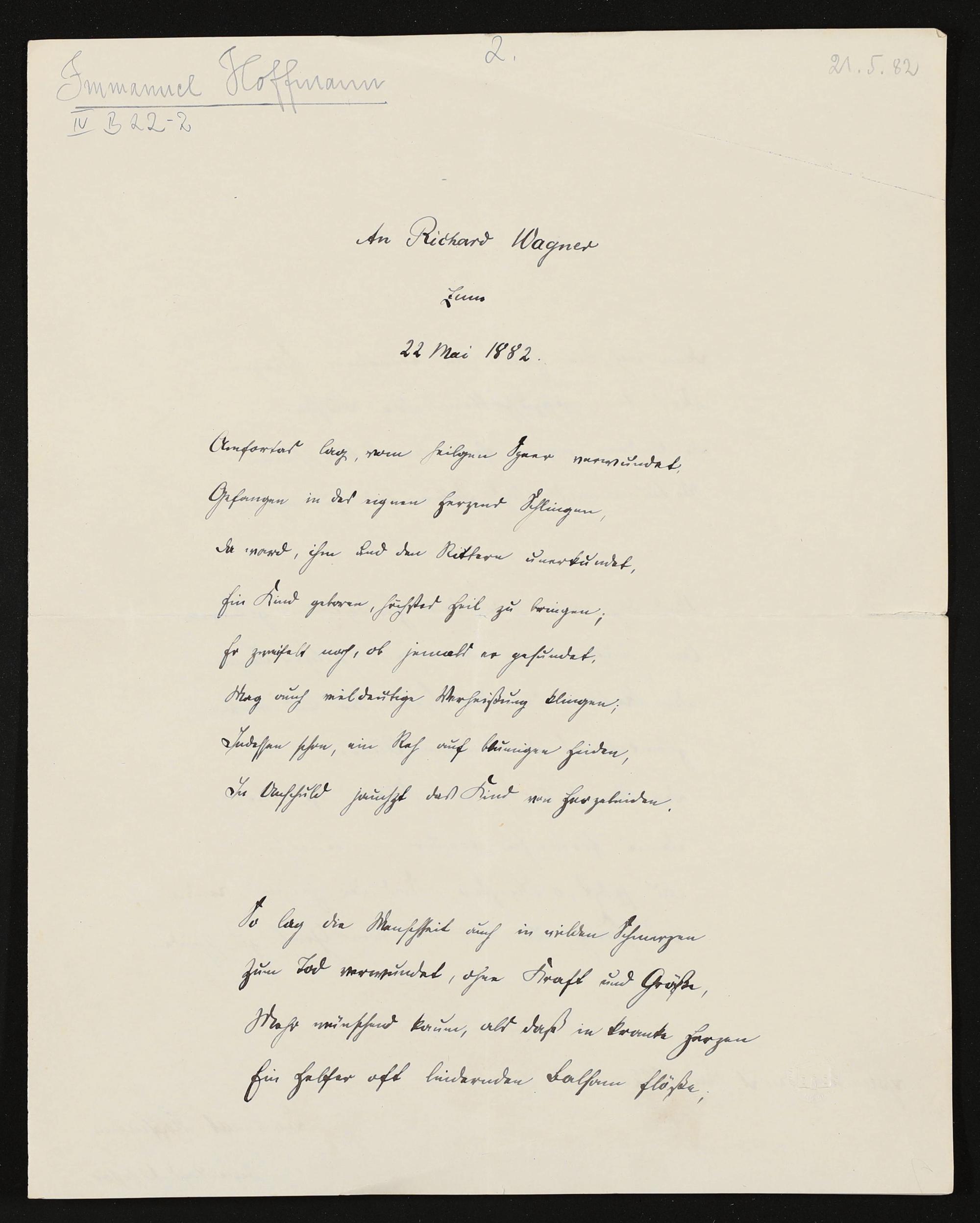 eigenhändiges Gedicht von Immanuel Hoffmann an Richard Wagner