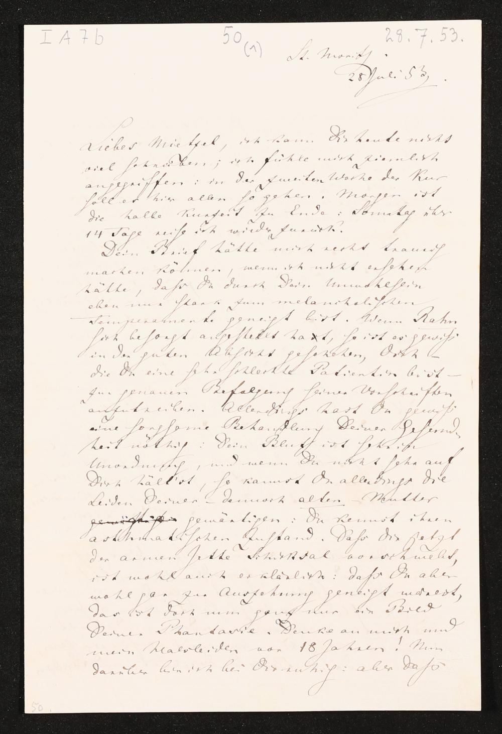 eigenhändiger Brief von Richard Wagner an Minna Wagner