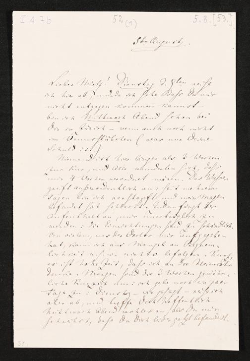 eigenhändiger Brief von Richard Wagner an Minna Wagner